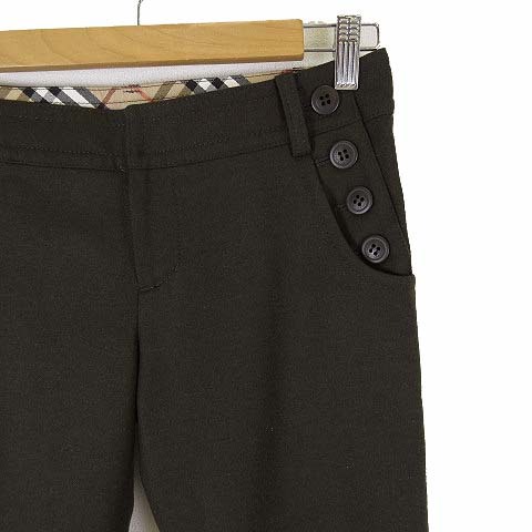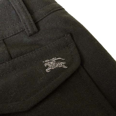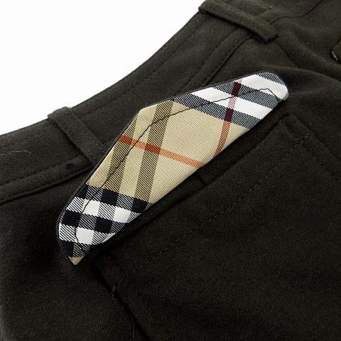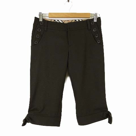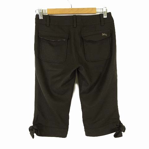 バーバリーブルーレーベル BURBERRY クロップドパンツ サブリナパンツ カシミヤ ウール ロゴ 刺繍 ストレッチ M 38 ダークカーキ