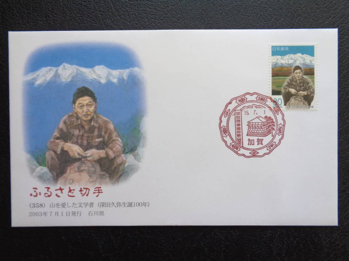初日カバー     2003年     ふるさと切手   山を愛した文学者(深田久弥生誕100年)    石川県