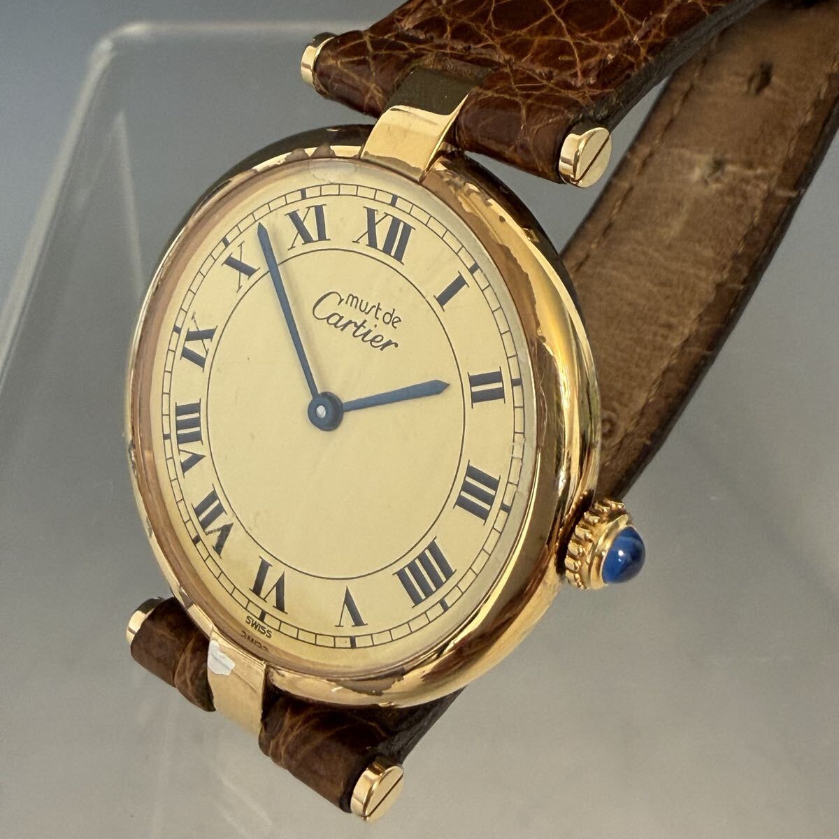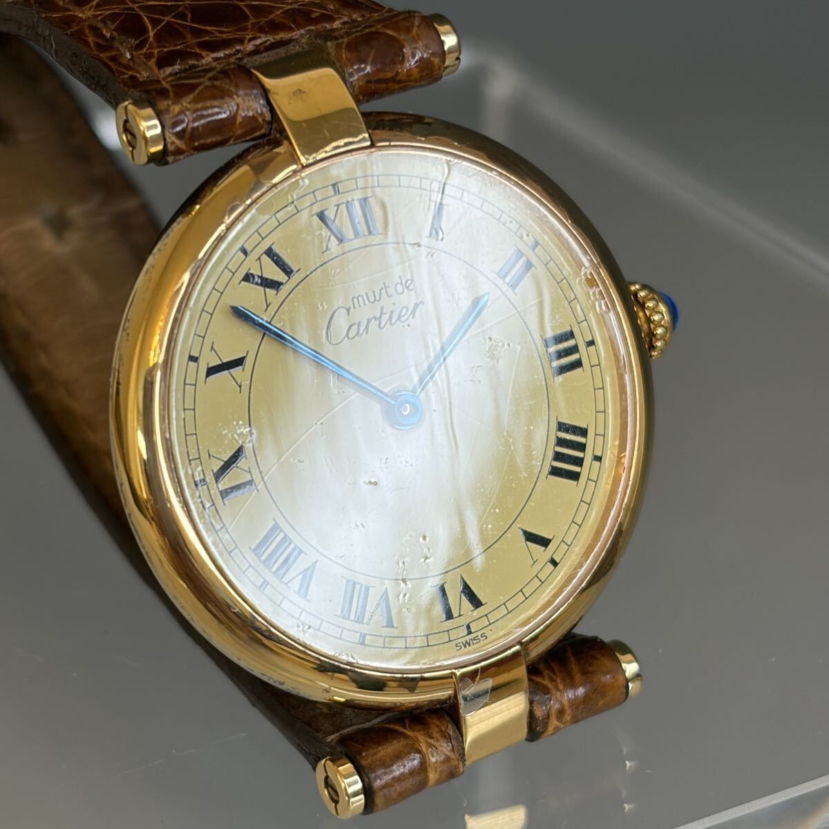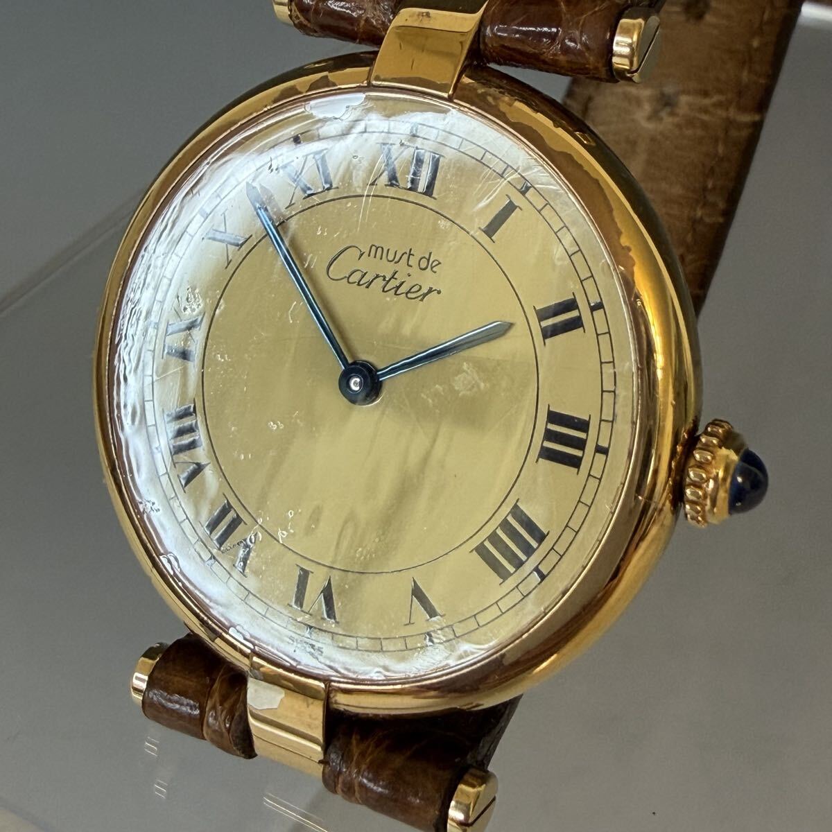 Cartier VERMEIL カルティエ ヴェルメイユ 古い腕時計 動作未確認 ジャンク品(難あり 風防保護フィルム硬化)