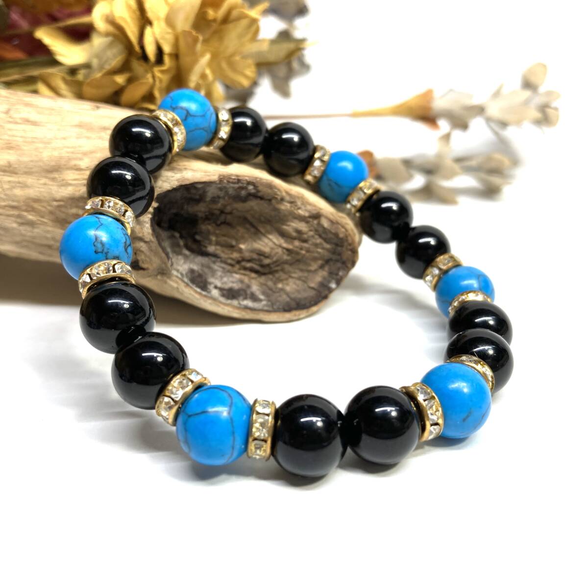 モリオン&ターコイズ パワーストーン ブレスレット (ゴールド) 10mm メンズ・レディース 厄除け 成功 人間関係 ストレス ☆