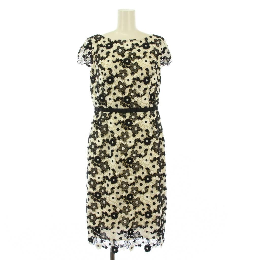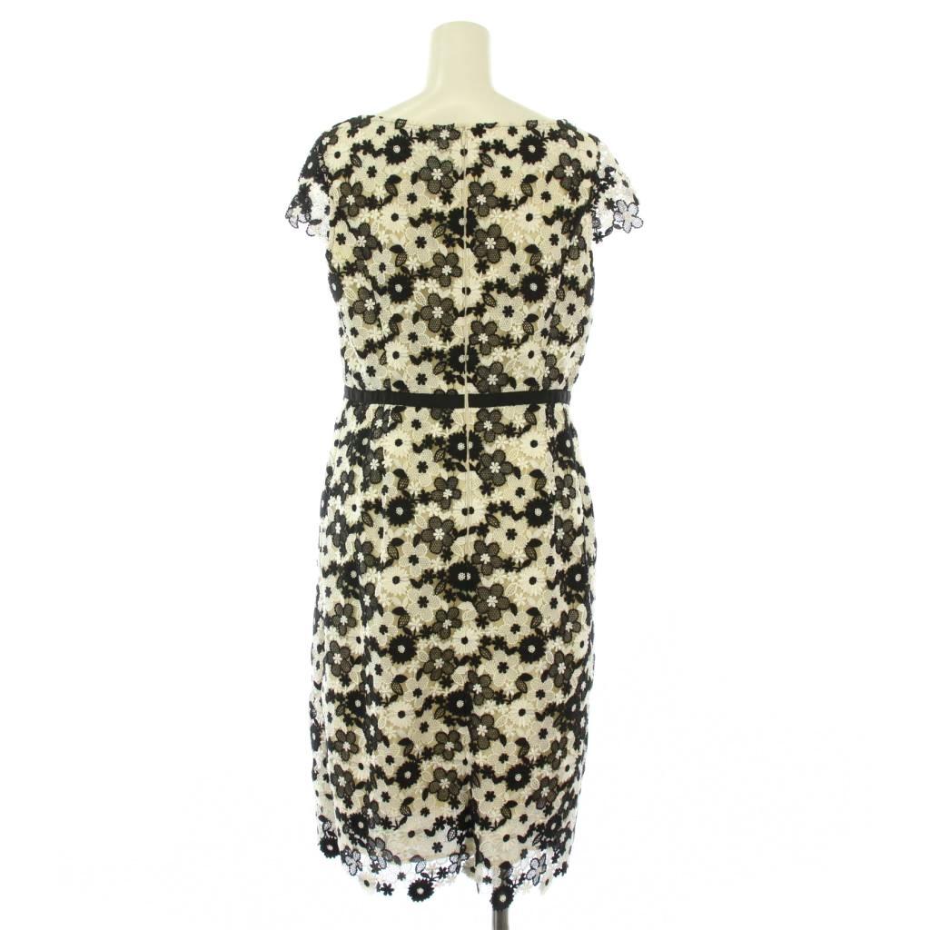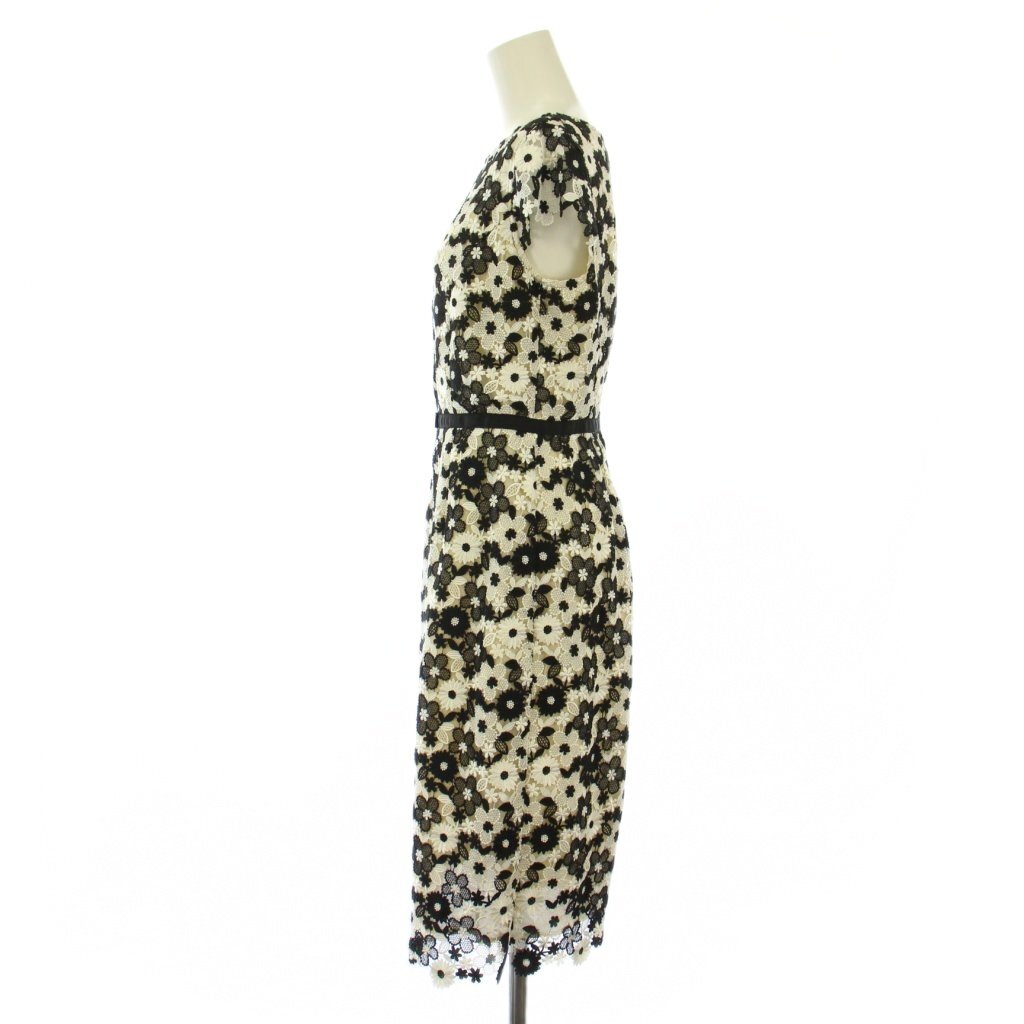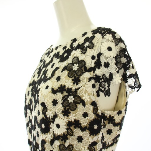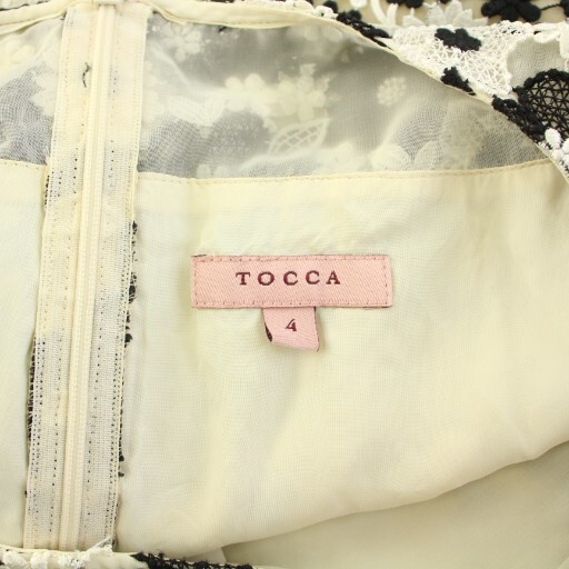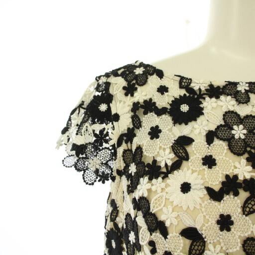 トッカ TOCCA タイトワンピース ひざ丈 半袖 クルーネック 花柄 刺繍 バイカラー 4 黒 ブラック 白 ホワイト /BB レディース