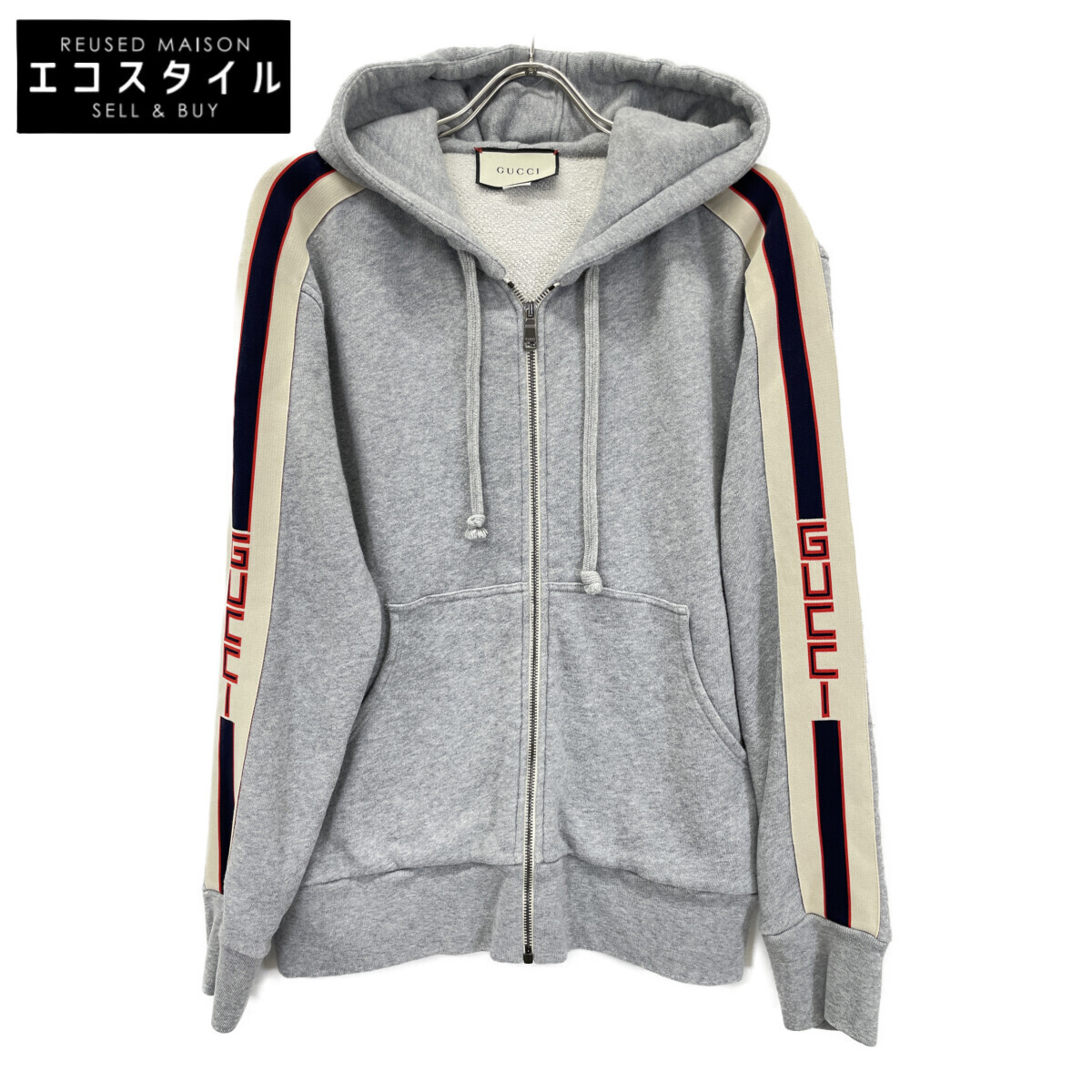 GUCCI グッチ グレー 497250 テクニカルロゴジップアップパーカー グレー S ジャケット コットン メンズ 中古