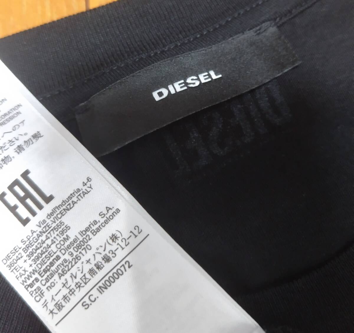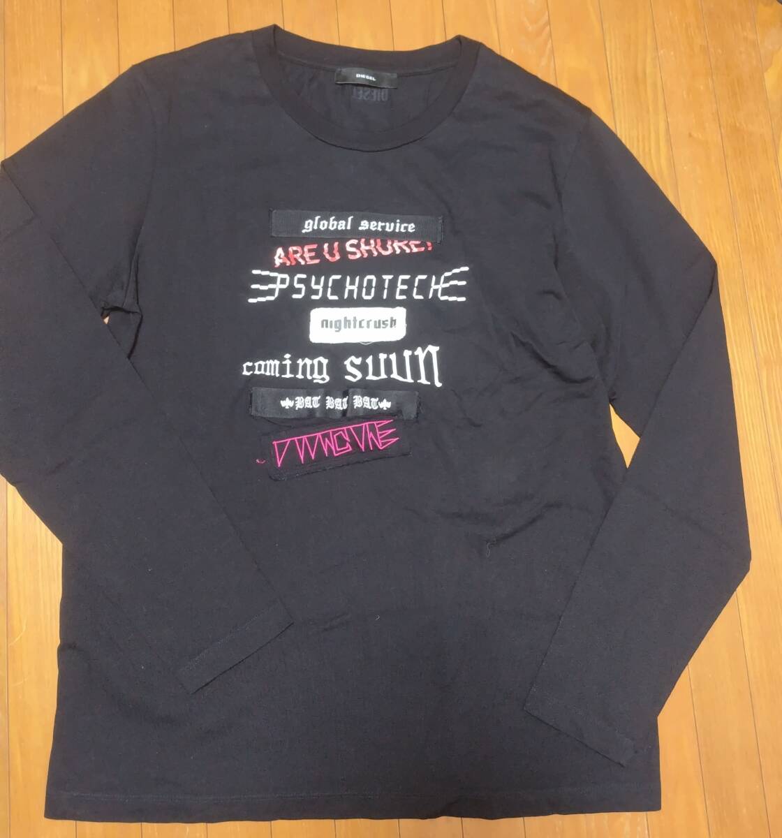 未使用 DIESEL ディーゼル 長袖Tシャツ ロングTシャツ カットソー S 黒 ブラック ロゴプリント メンズ