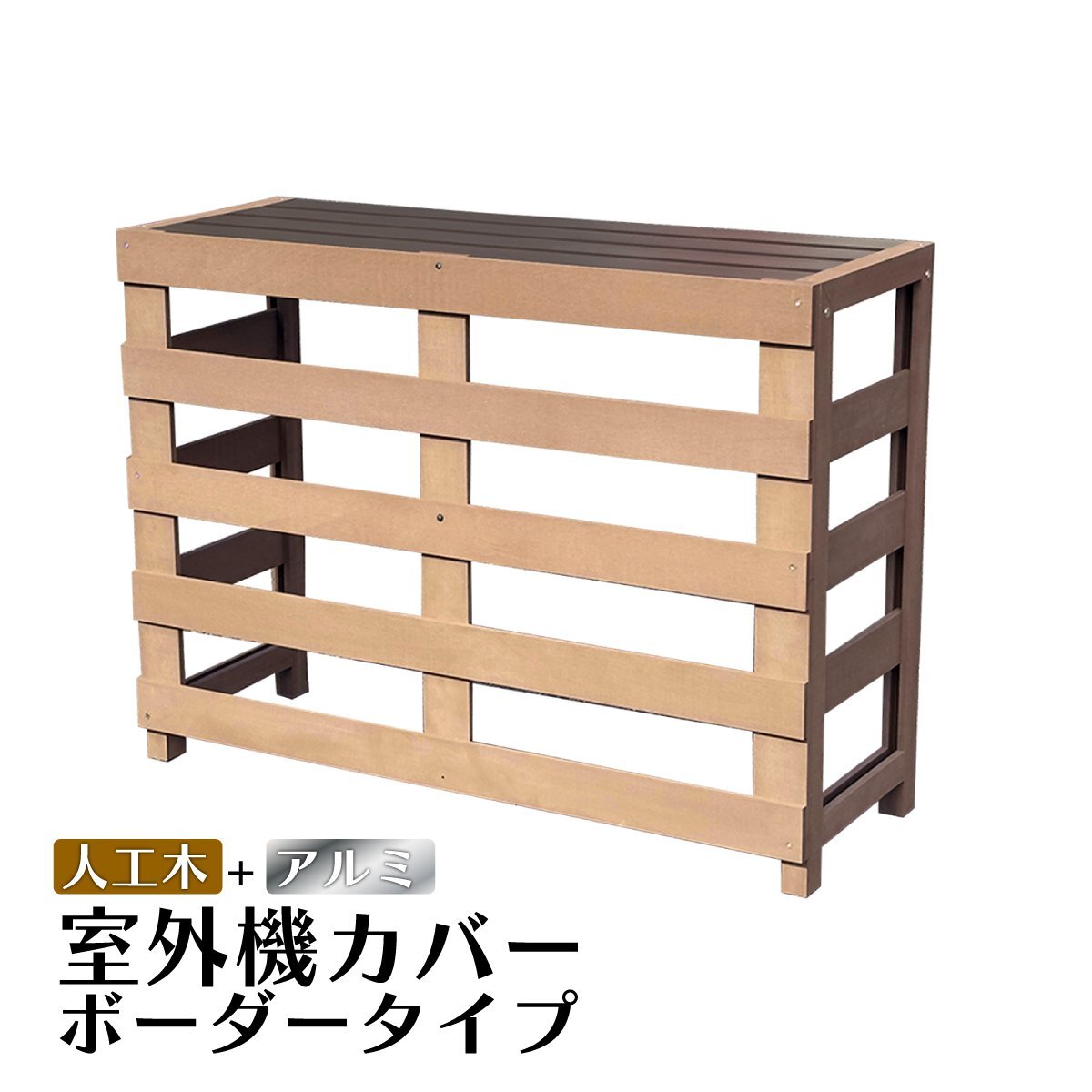 igarden アイウッド 室外機カバー ボーダータイプ ナチュラル 樹脂製 人工木 エアコンカバー アルミ 雨よけ 日よけ 雪よけ 節電 簡単組立