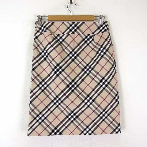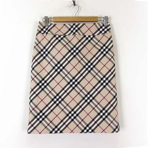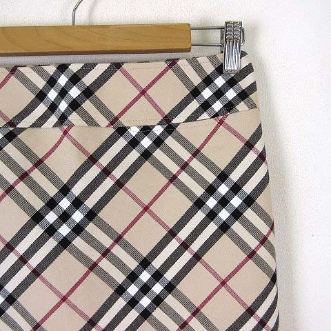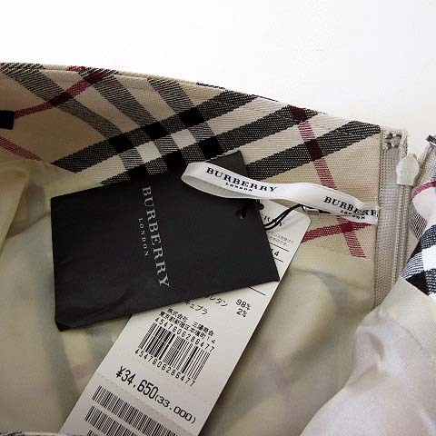 未使用品 バーバリー BURBERRY スカート 膝下丈 ノバチェック柄 コットン ストレッチ M 38 ベージュ 黒 赤 国内正規品 タグ付 美品