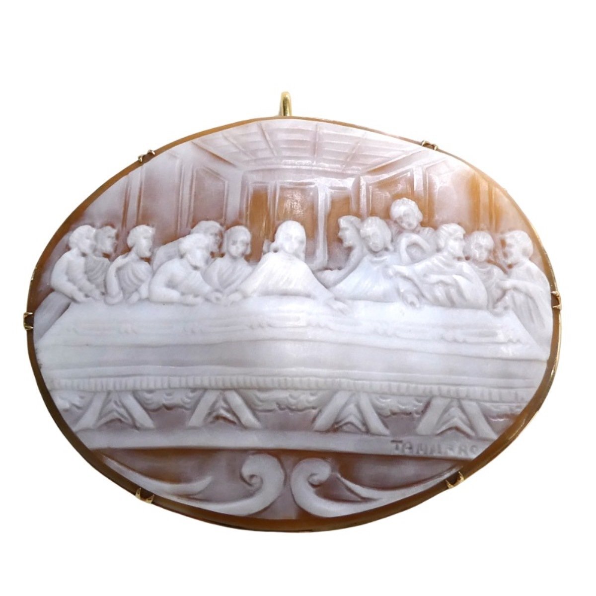 【K18】 カメオ ブローチ ペンダントトップ シェルカメオ 最後の晩餐 レオナルドダヴィンチ TAMMARO タマロ作 cameo brooch◇J
