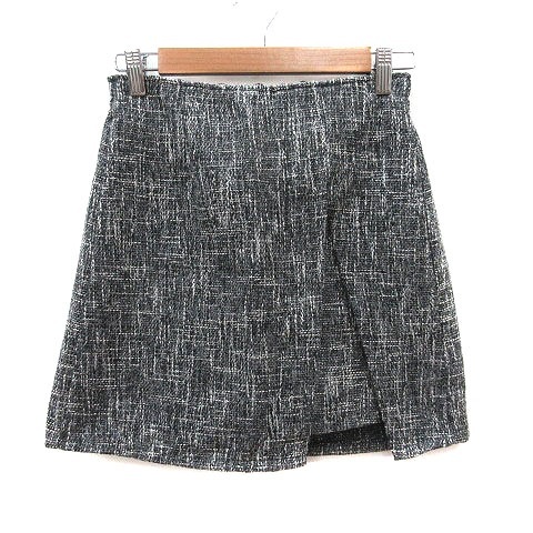ビーアメント VEHEMENT.. 台形スカート ミニ ツイード M 黒 ブラック 白 ホワイト /MS ●RY レディース