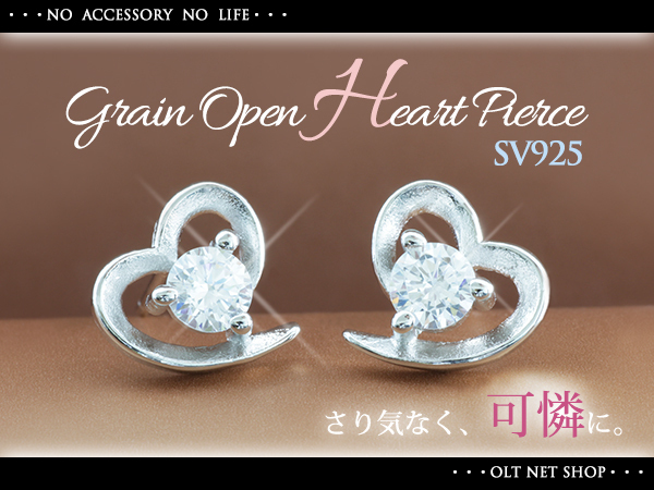 新品/ピアス/オープンハート/一粒/ダイヤ/シルバー/レディース/両耳/スタッド/シンプル/上品/女性/CZ/プラチナ仕上げ/SV925 刻印