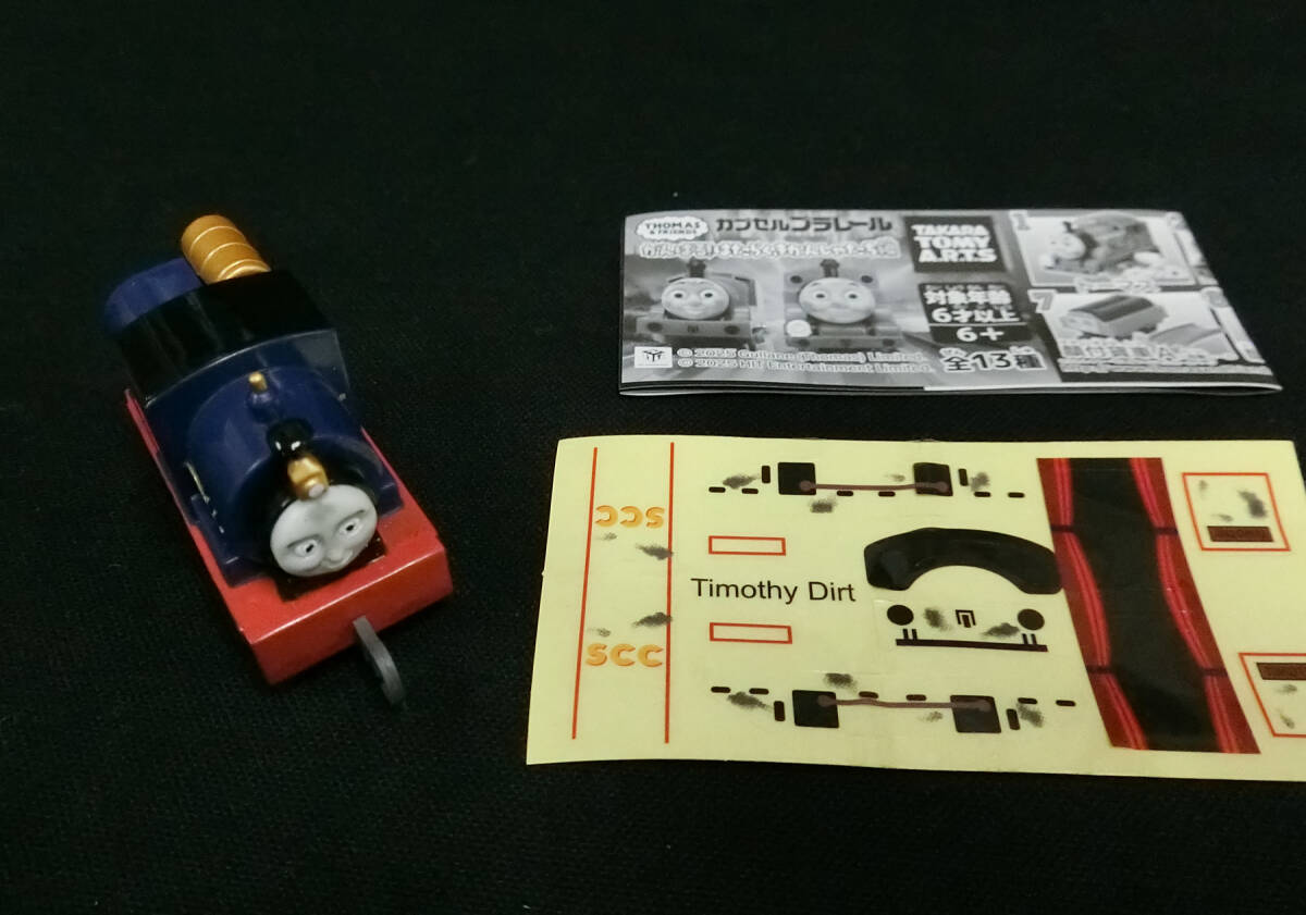 タカラトミーアーツ発売、きかんしゃトーマス(Thomas & Friends) カプセルプラレール「きかんしゃトーマス がんばる!はたらくきかんしゃたち」編のなかの 「ティモシー (連結パーツ付)」です。