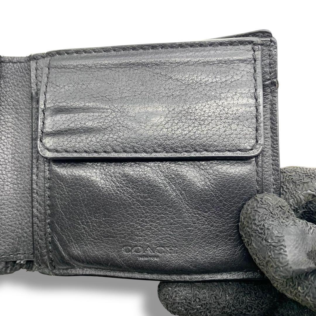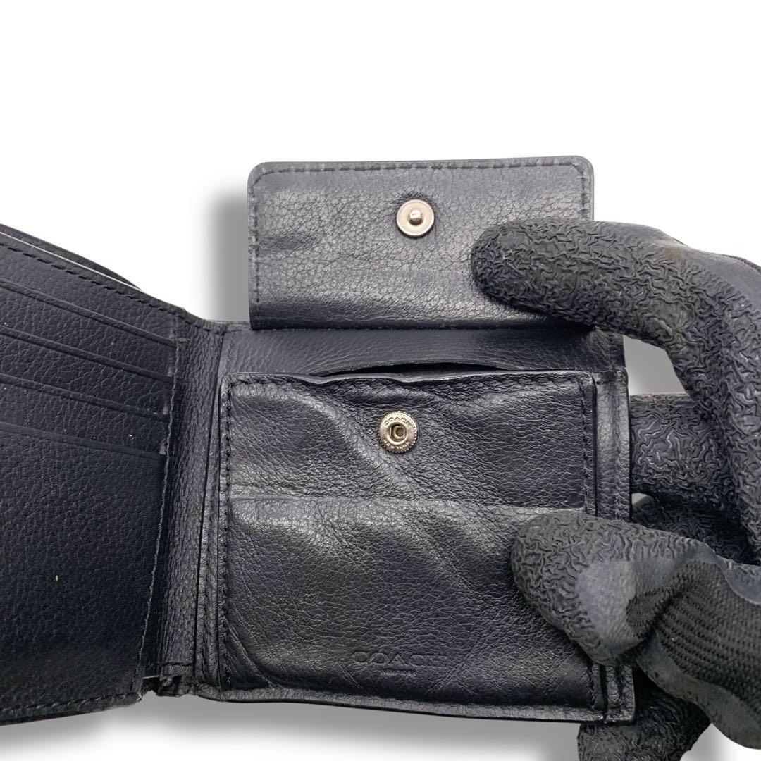 コーチ 二つ折り 財布 レザー ロゴ 黒 ブラック