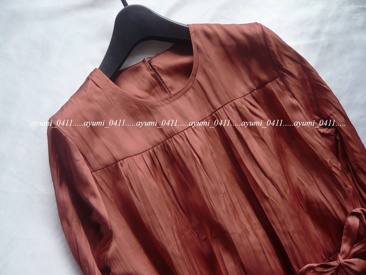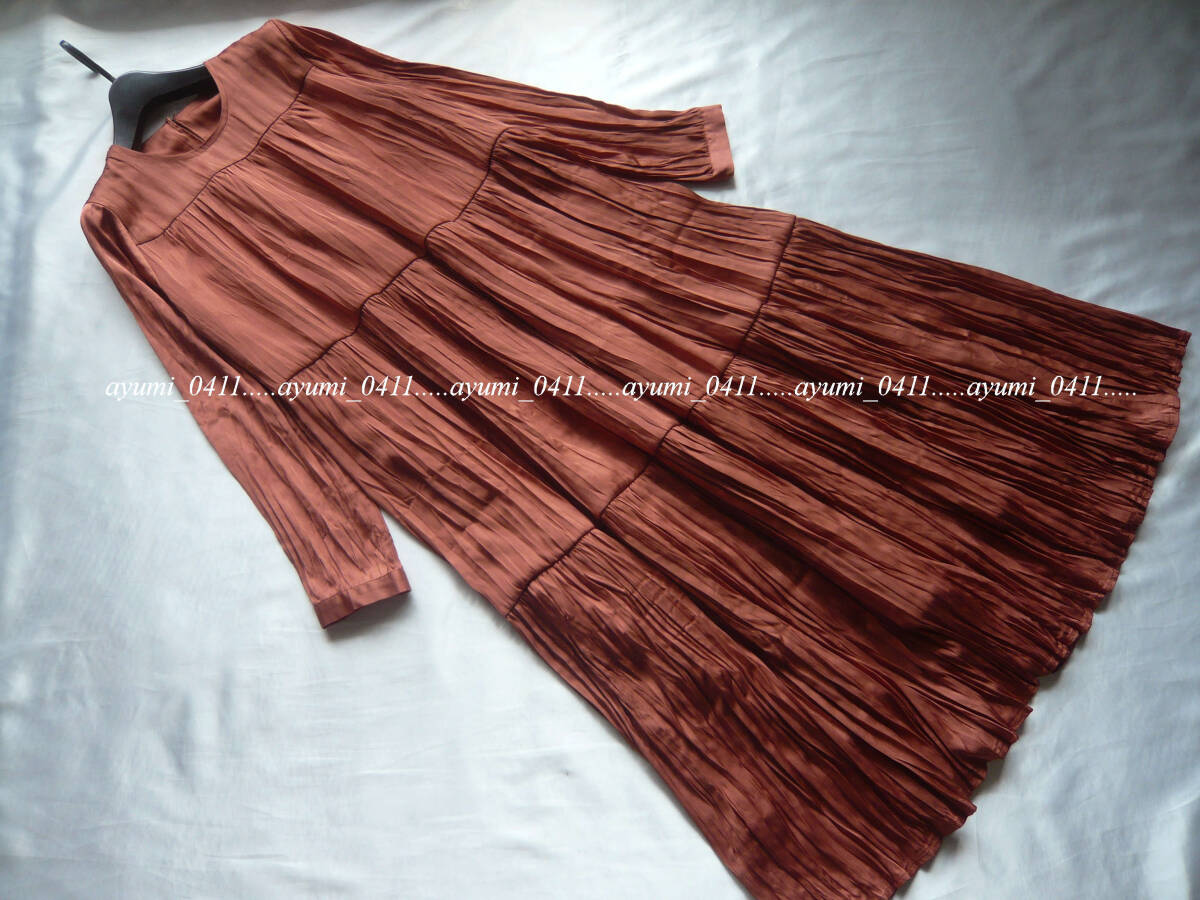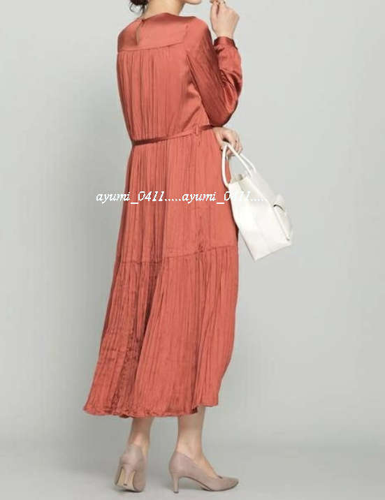 ★未使用★nano universe ナノユニバース/レンガ・ウエストリボン付き ティアード プリーツワンピース/フリーサイズ