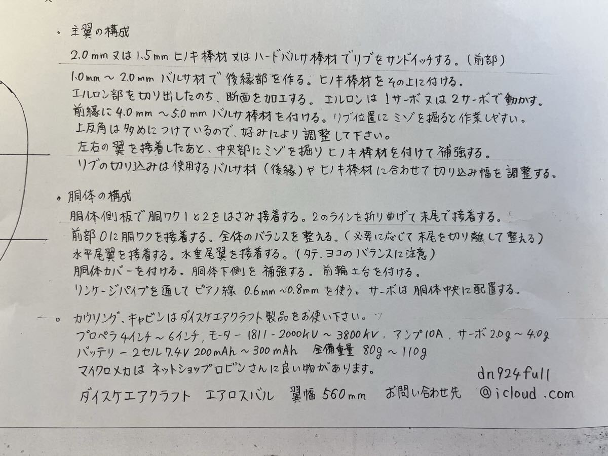 バルサやピアノ線などはご自身でご用意いただくことになります。