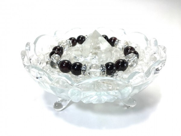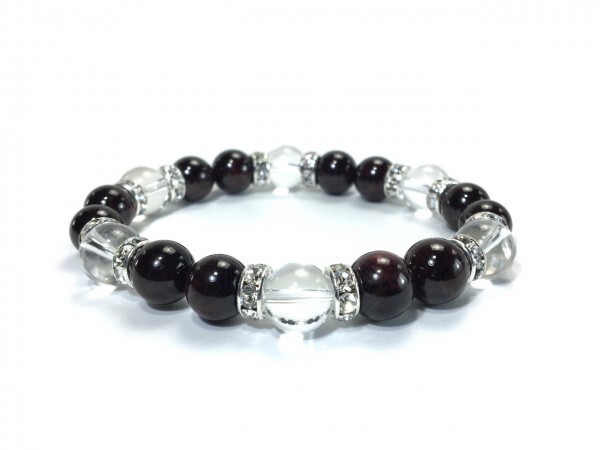 ガーネット×水晶 パワーストーン ブレスレット 天然石ブレス 10mm (ロンデル:シルバー) メンズ・レディース 浄化済み