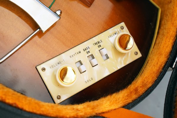 ヘッドのサンバーストやコントロールプレートのフォント等から70年代Greco VB-50辺りに近いです。