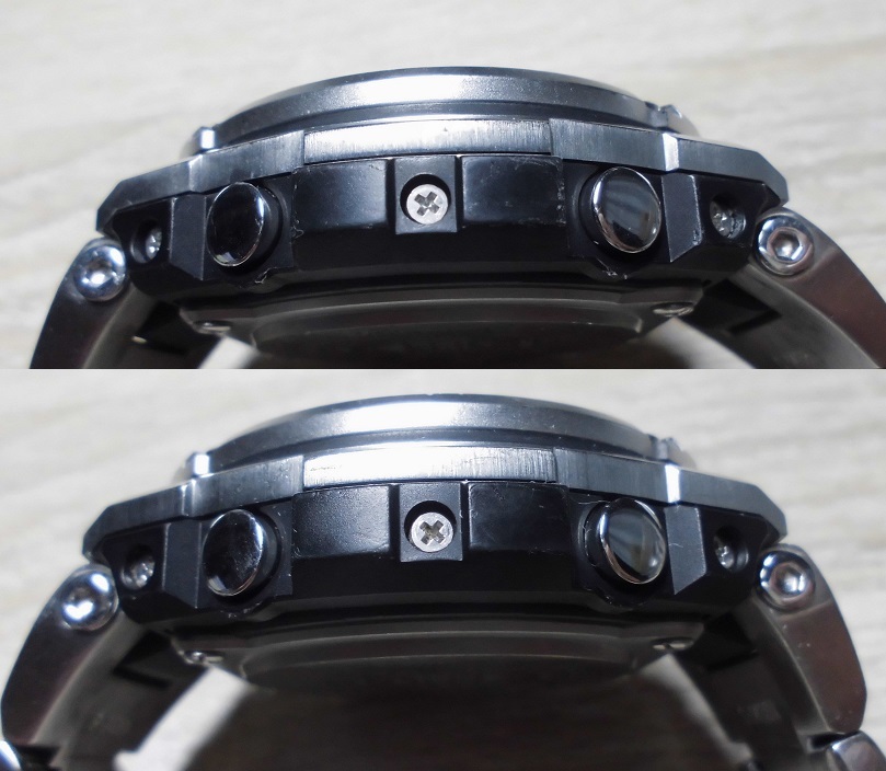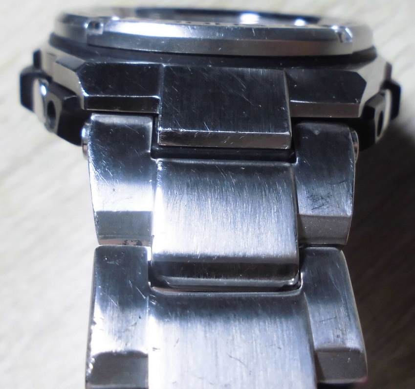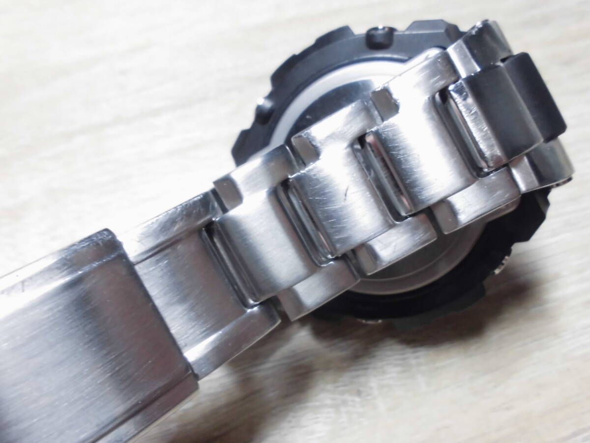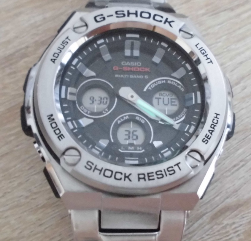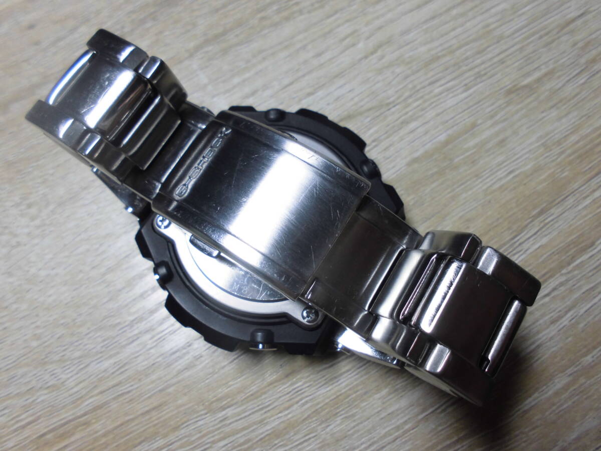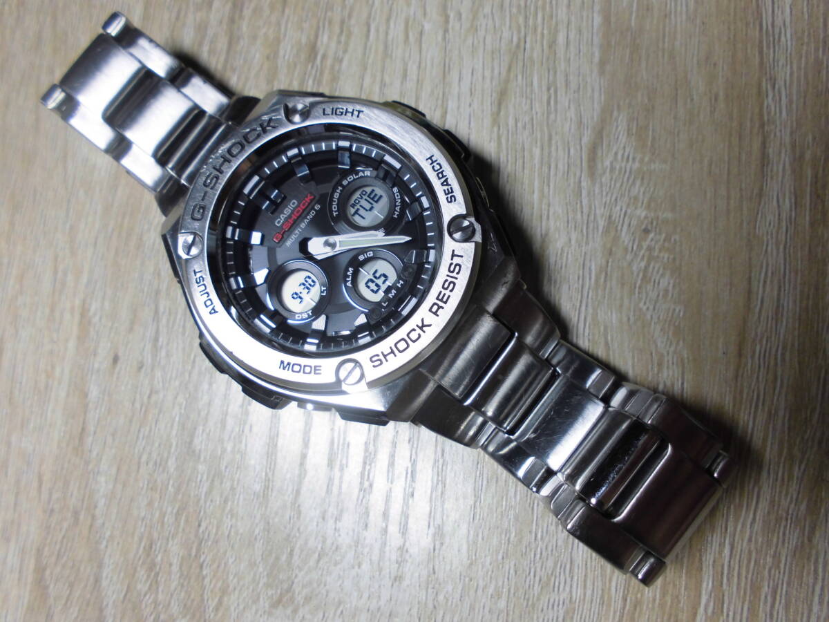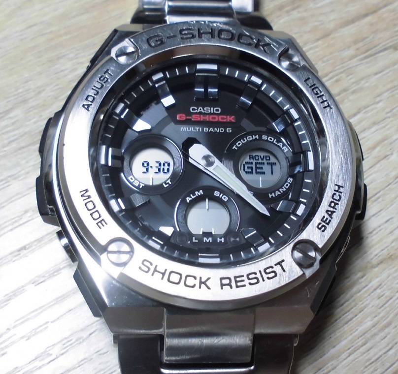 レイヤーガード構造・機能はそのままに、モジュールの小型化によりダウンサイジングを実現し、デザインバリエーションの幅を広げたG-STEEL GST-W310D-1AJF!!! 衝撃に耐える樹脂製のインデックスは、表面に施した蒸着膜をレーザーで削り、タフネスと美しさを両立。 ステンレス素材をベゼル、バンドに用いて、メタルの硬質感を打ち出したスタンダードなデザインに仕上げました。マルチバンド6をはじめ針退避機能、フルオートダブルLEDライトなどの実用性も兼備しています。 中古です。写真の時計だけの出品です。腕周りは17cmぐらいです(素人採寸なので多少の誤差はご了承ください)1枚目は蛍光灯スタンドの真下で、2枚目は自然光の中で撮影しましたので見比べてください。1枚目の写真を見てもらうとわかると思いますが、電波受信OKです。写真撮影時は、ライトが点灯し動作中です。中古なのでコキズはありますが良い状態です。 |