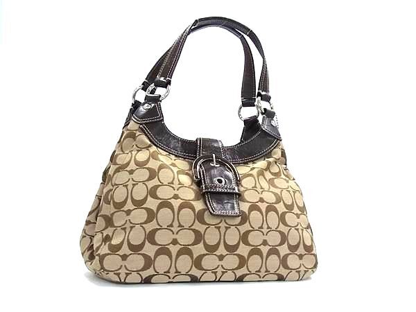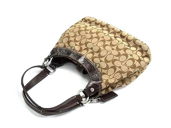 1円 ■極美品■ COACH コーチ F17094 シグネチャー キャンバス×パテントレザー トートバッグ ショルダー 肩掛けかばん ブラウン系 BQ0959
