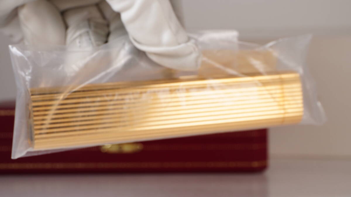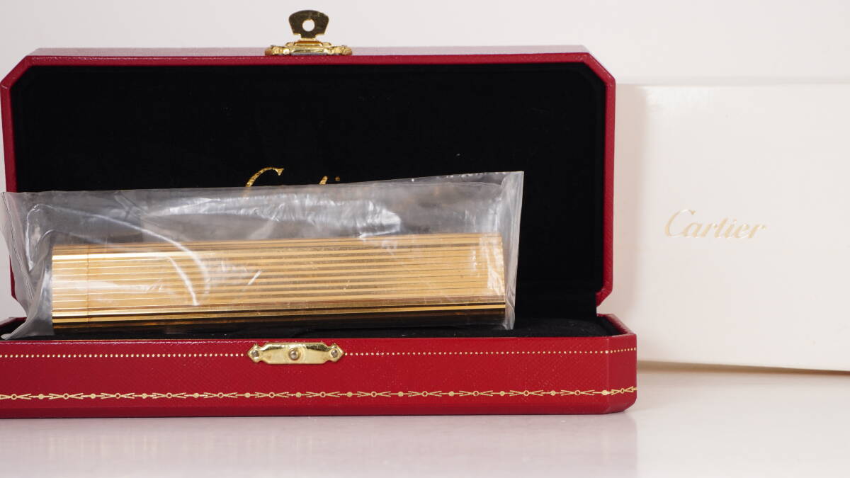 Cartier カルティエ ガスライター 長款 金メッキ 縦ライン模様 箱付 現状品