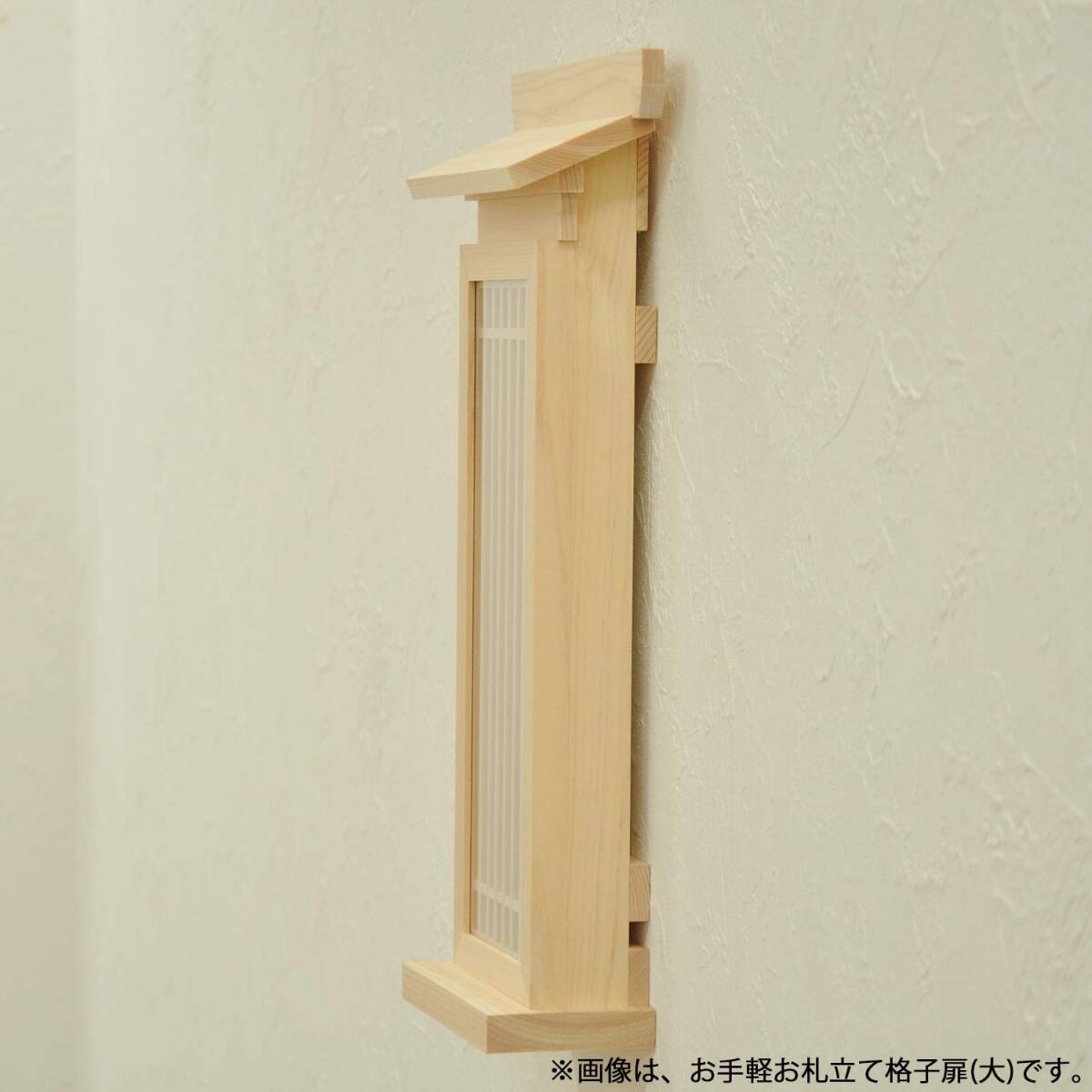 ●岐阜県で生産される「東濃桧」を使用した、日本製の簡易神棚”お手軽お札立て”。 ●職人により丁寧に作られたシンプルな神棚。 ●壁掛用のフックが付属しておりますので、商品到着後すぐに設置できます。 ●背板をスライドさせて外し、お札を納めます。●立てて置くことも出来ます。