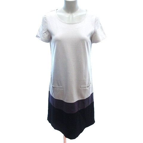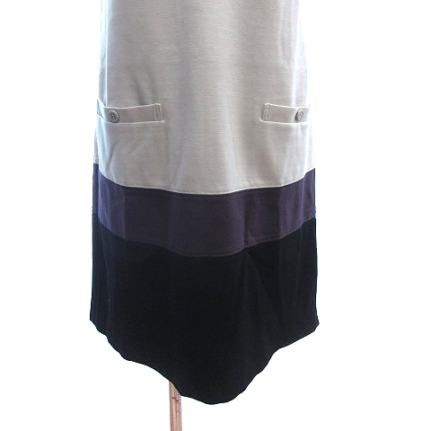 アンタイトル UNTITLED ワンピース ひざ丈 トライカラー 半袖 2 M ベージュ /AU レディース