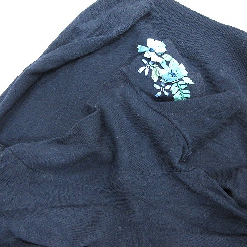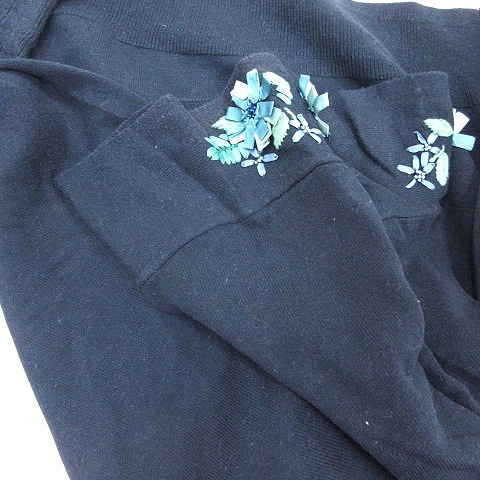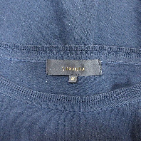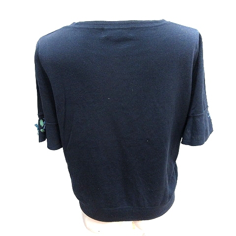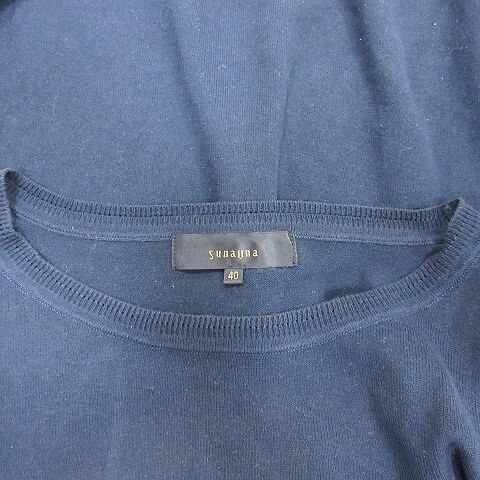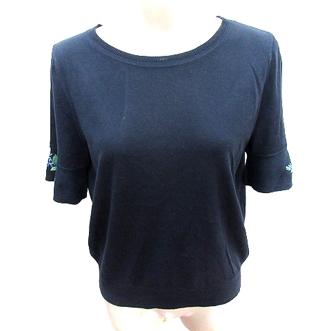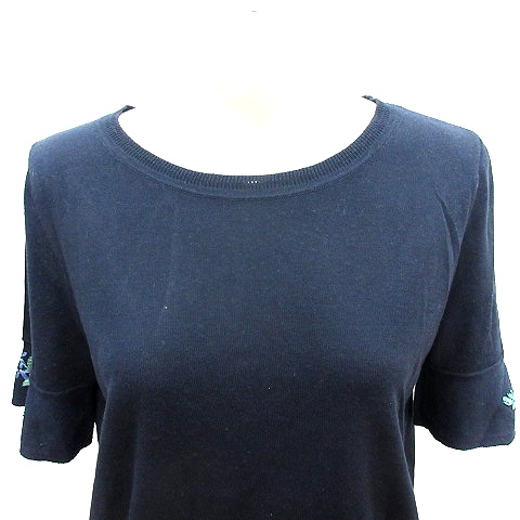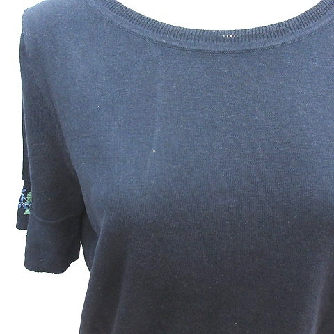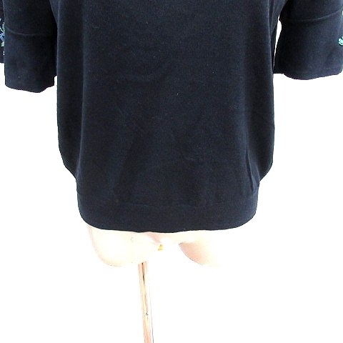 スーナウーナ Sunauna ニット カットソー 刺繍 フレンチスリーブ 五分袖 40 L 紺 ネイビー /AU レディース
