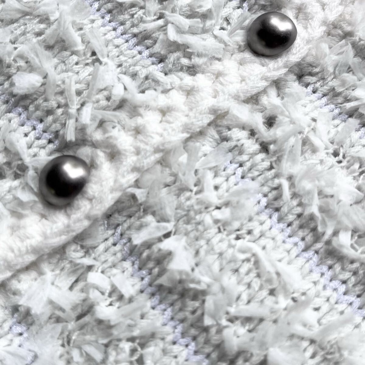 お色はホワイト系とライトグレー系。ニットツイード素材。ボタンもおしゃれ。