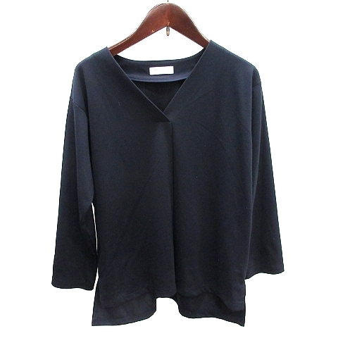 B&Y ユナイテッドアローズ BEAUTY&YOUTH ビューティー&ユース カットソー クロスオーバーVネック 七分袖 紺 ネイビー /AU レディース
