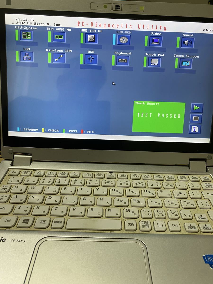 状態  タッチパネルOK 電源ON、win認証済初期化、Wi-Fiへの接続、音出しOK、物理スイッチOK DVD読み込みOK