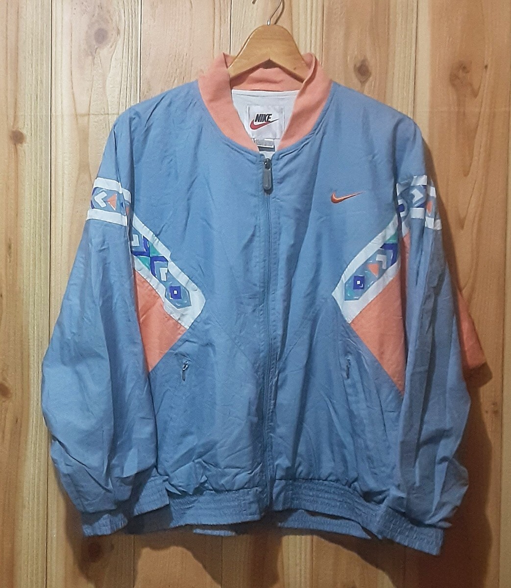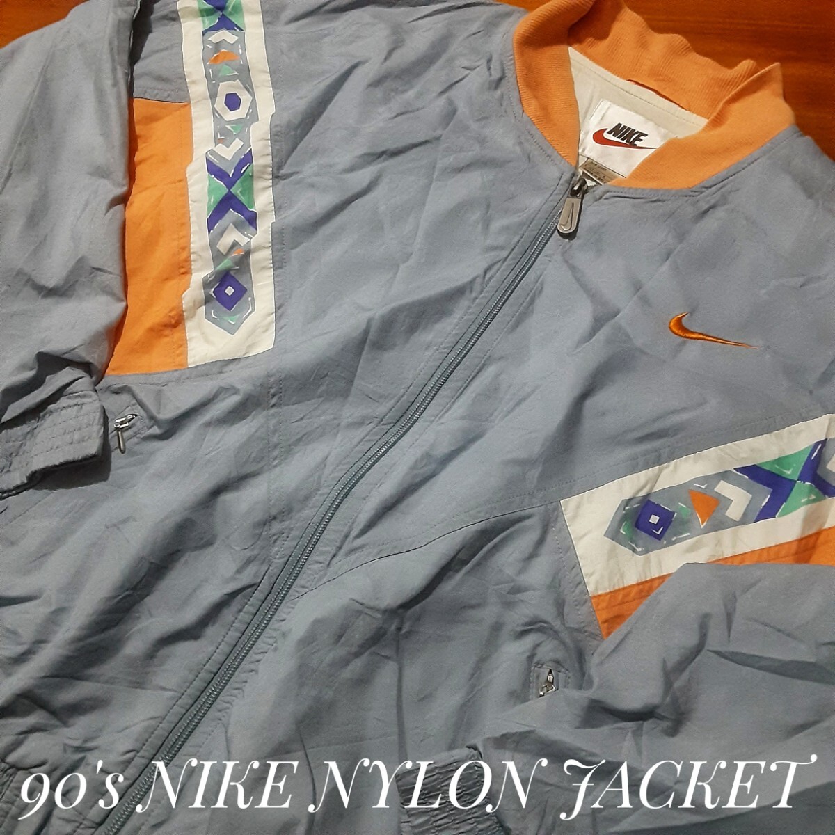 こちらは、古着業界でも人気のございます、【NIKE/ナイキ】の希少な90'sヴィンテージ 銀タグ!刺繍ロゴ入りデザインのナイロン ブルゾン ジャケットになります!