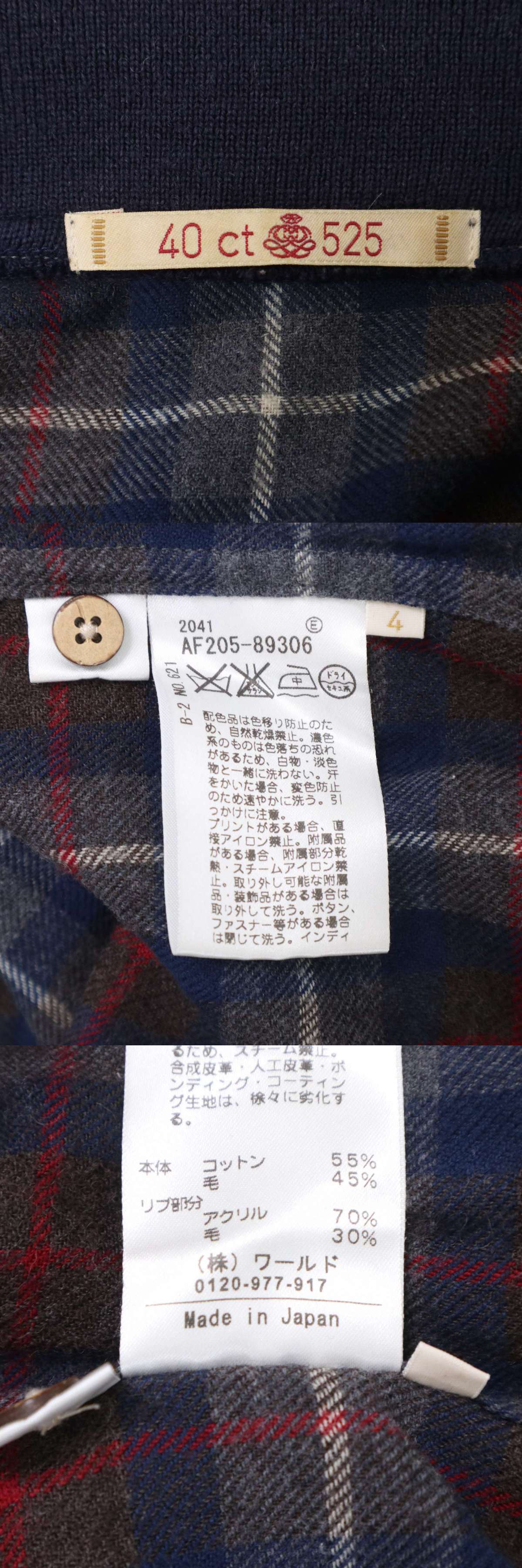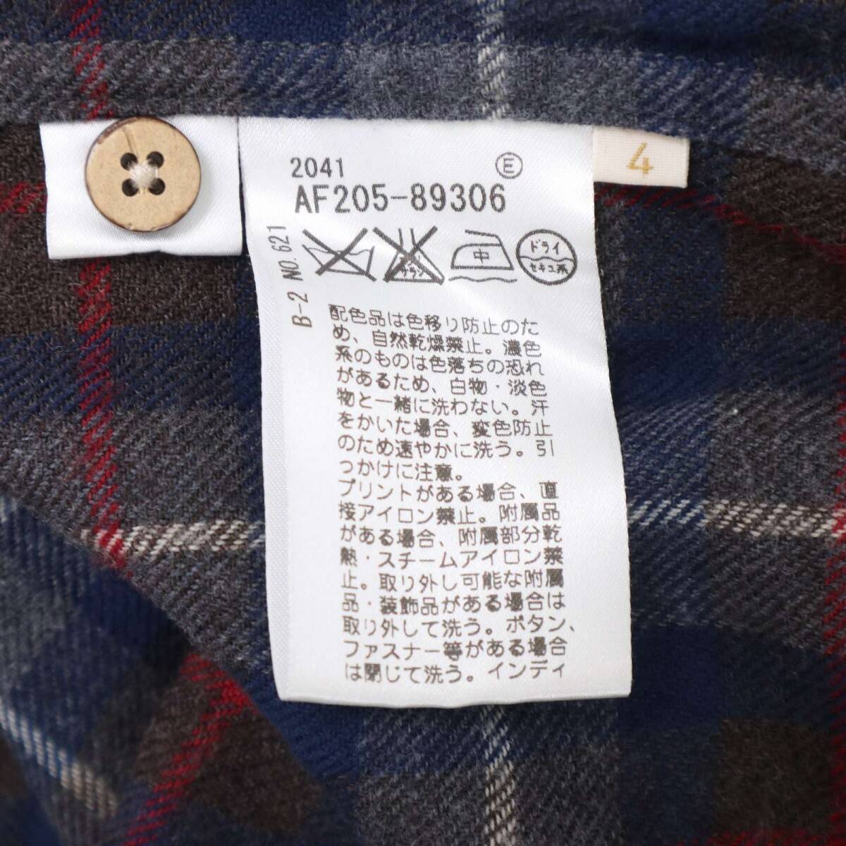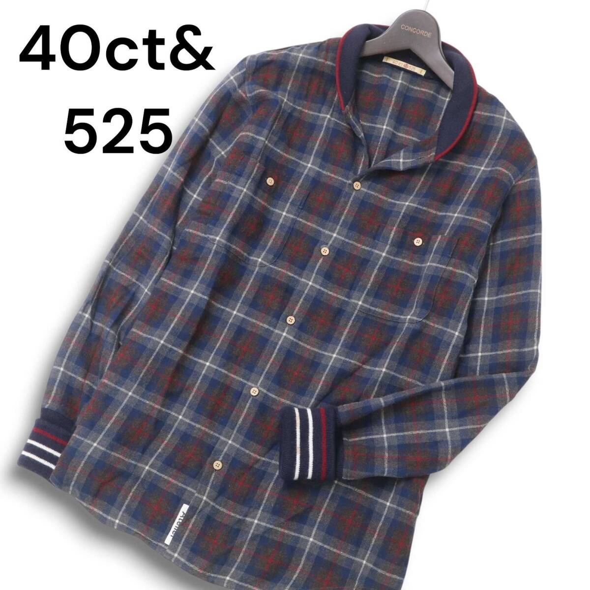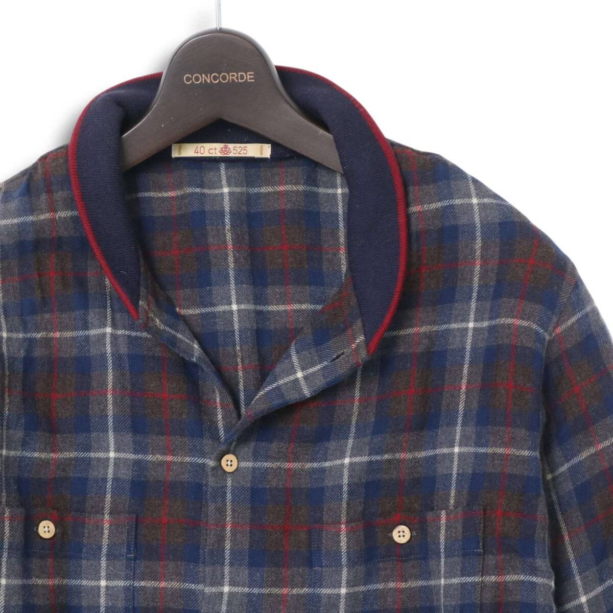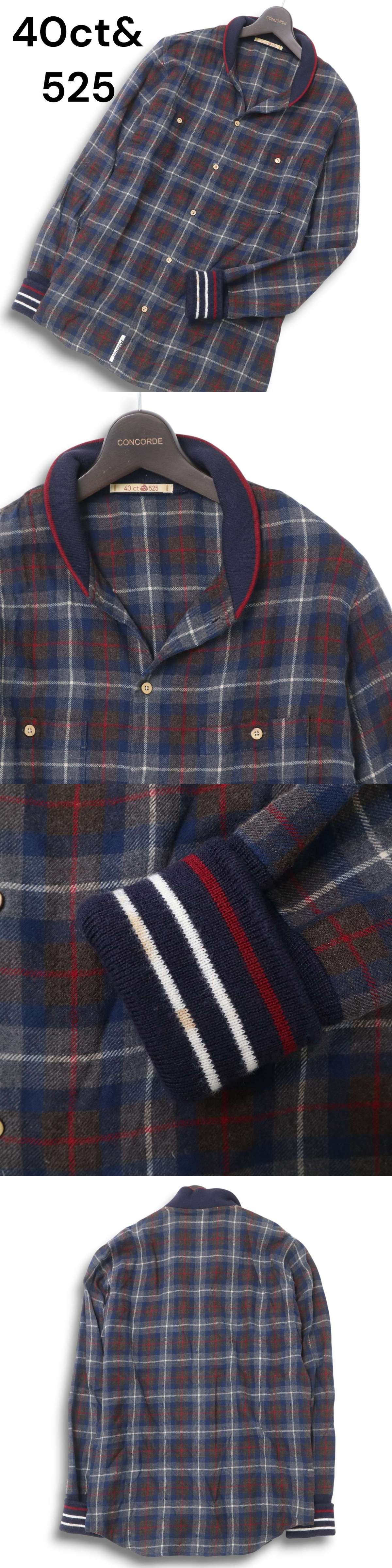 40ct&525 タケオキクチ 秋冬 ウール混 リブ切替★ 長袖 ショールカラー チェック ネル シャツ Sz.4 メンズ