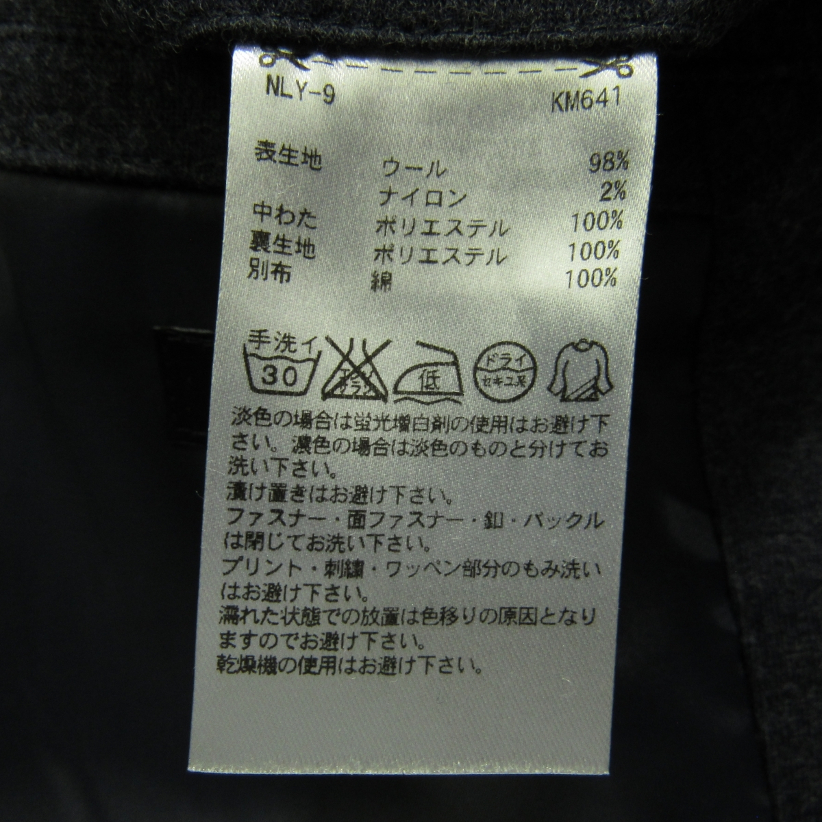 表生地-ウール98% ナイロン2% / 中わた-ポリエステル100% / 裏生地-ポリエステル100% / 別布-綿100% チャコールグレー |