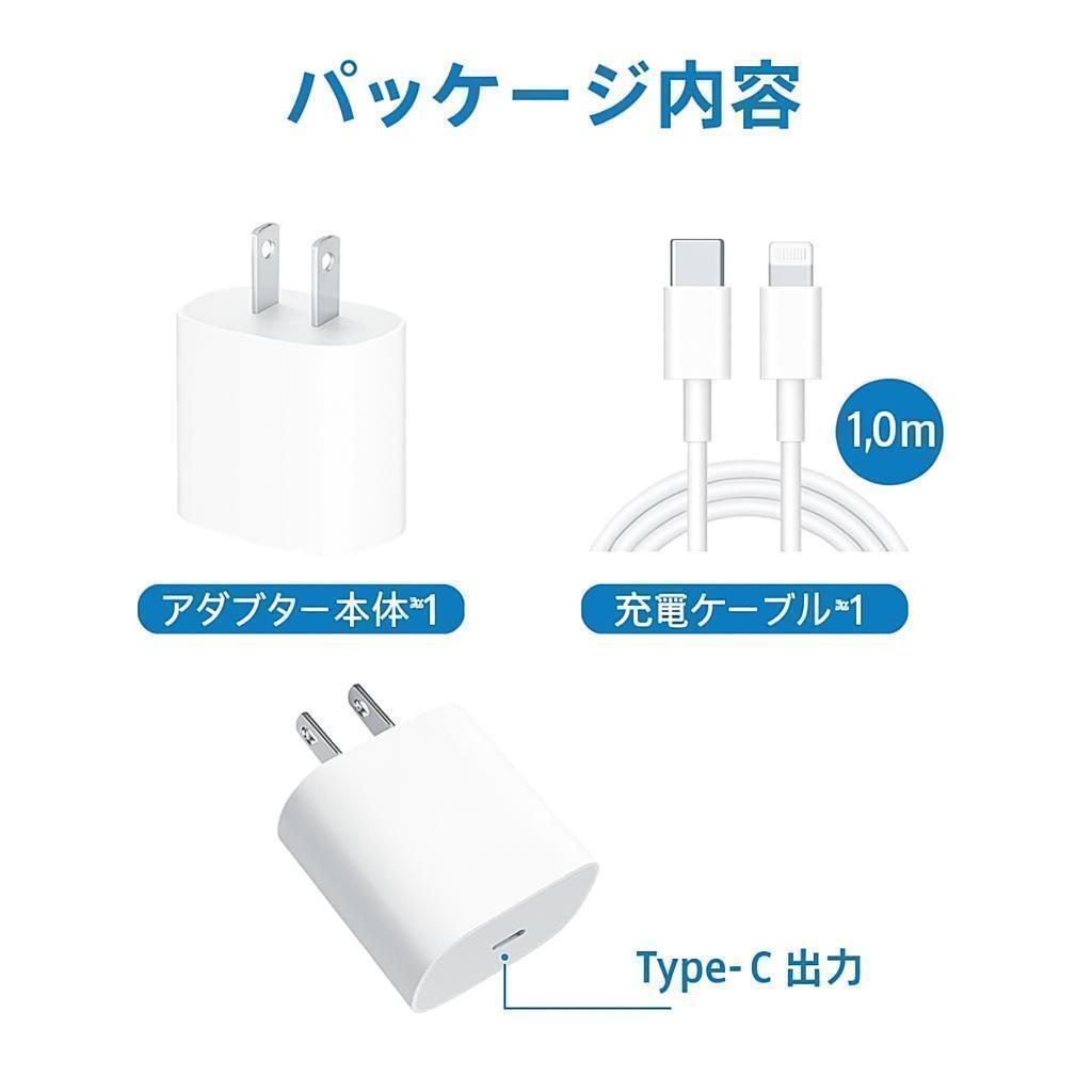 急速充電器 USB-C 20W + Lightningケーブル 2M まとめ売り セット 急速充電 iPhone iPad アダプタ ケーブル ライトニング 軽量 高耐久 PD