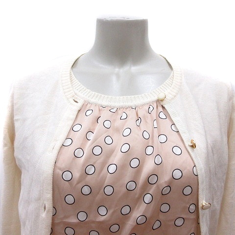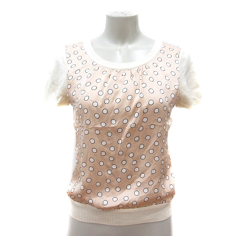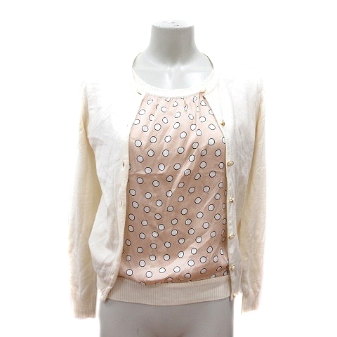 リューデベービス Rue de B bis アンサンブル ニット カーディガン カットソー ドット 半袖 切替 アンゴラ混 2 M 白 アイボリー