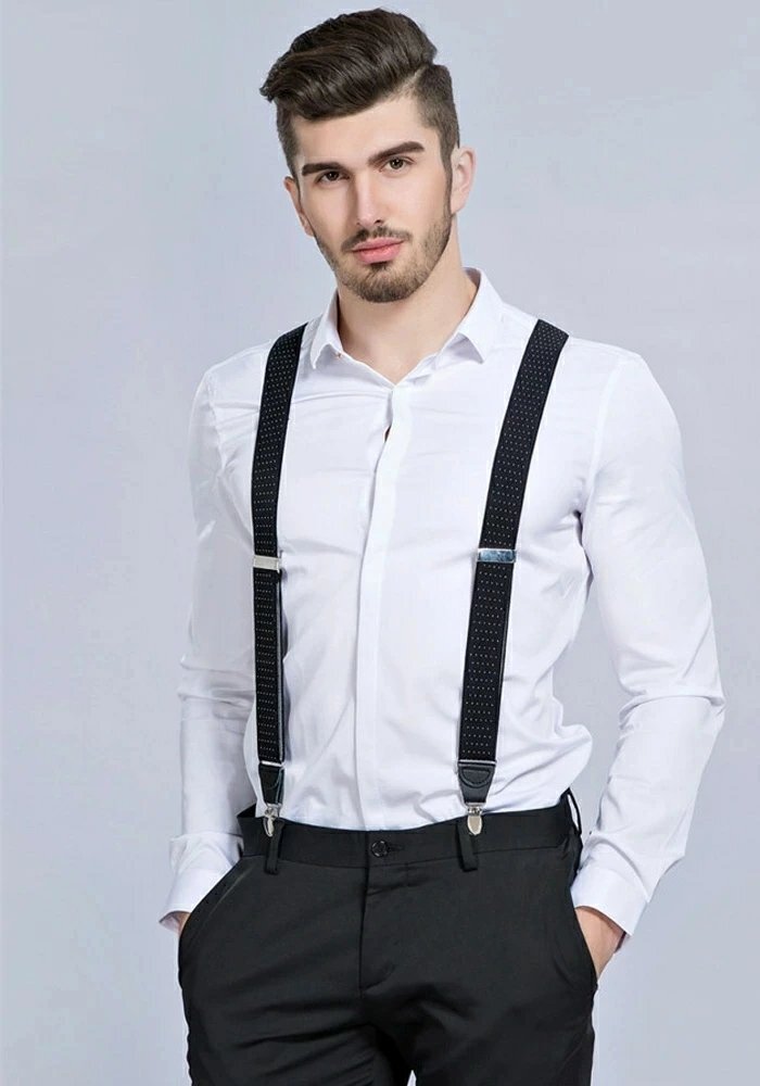 サスペンダー 美シルエット:フォーマルシーンはもちろん、ビジネス、カジュアルでも使えるサスペンダー .ベルトを使わず、美しいシルエットを保つことができます.