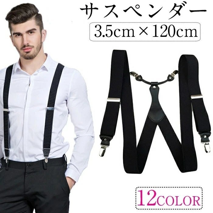 サスペンダー メンズ Y型 3.5cm×120cm カジュアル フォーマル 高級感漂う おしゃれ 人気 サスペンダー 男女兼用 ☆12色選択/1点