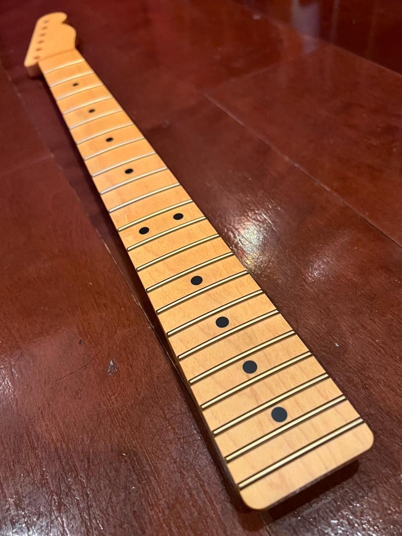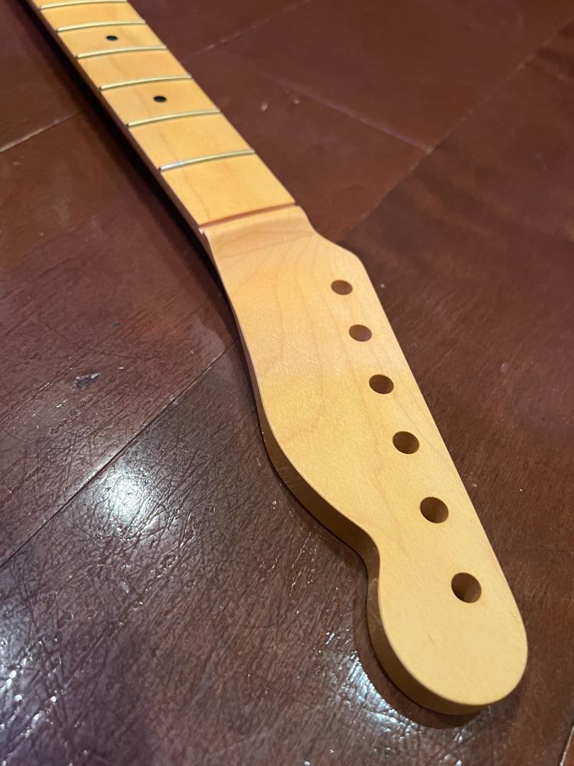 Warmothのテレキャスターネック、新品未使用品です。 貼りメイプル、ツバ出し22フレット、