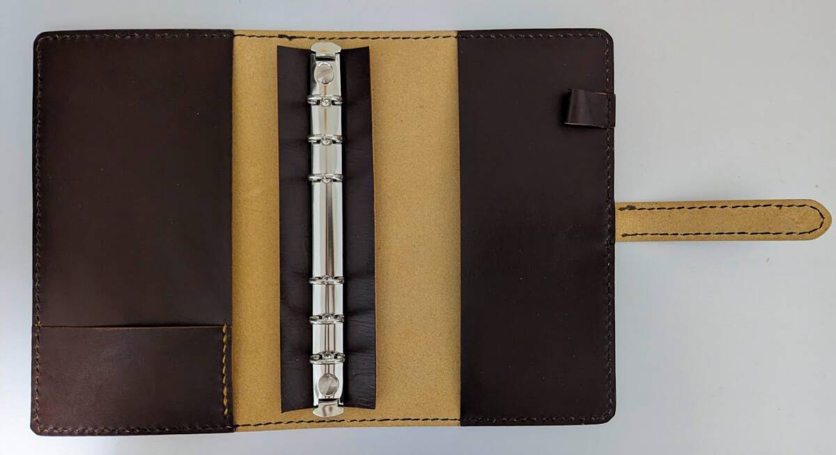 バイブルサイズ対応の牛革手縫いシステム手帳です。