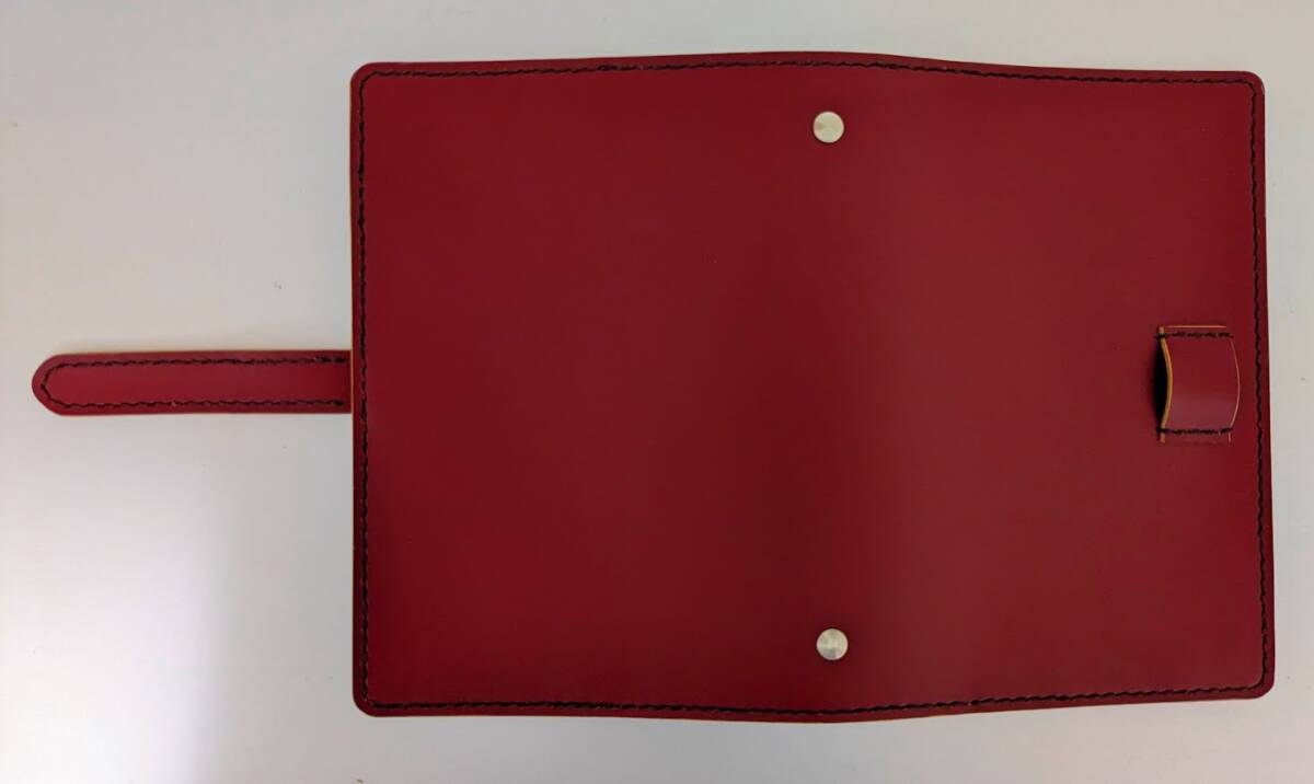 マルーン色でハリが有りしっかりした革です。