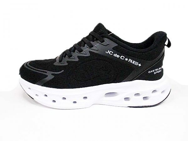 '25新作★25.5cm★\17600〓CASTELBAJACカステルバジャック〓メッシュ軽量家紋型押しスリップインズスニーカーblack