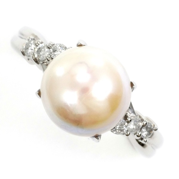 PT900 リング 指輪 11号 パール(真珠) 約9mm ダイヤ 0.13 総重量約5.3g 中古 美品 送料無料 | |