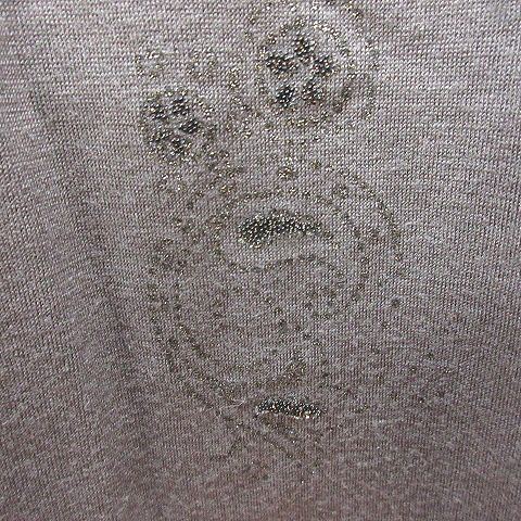 レリアン Leilian ニット カットソー ハイネック プリント 長袖 ラメ ウール 9 M グレージュ /MN レディース