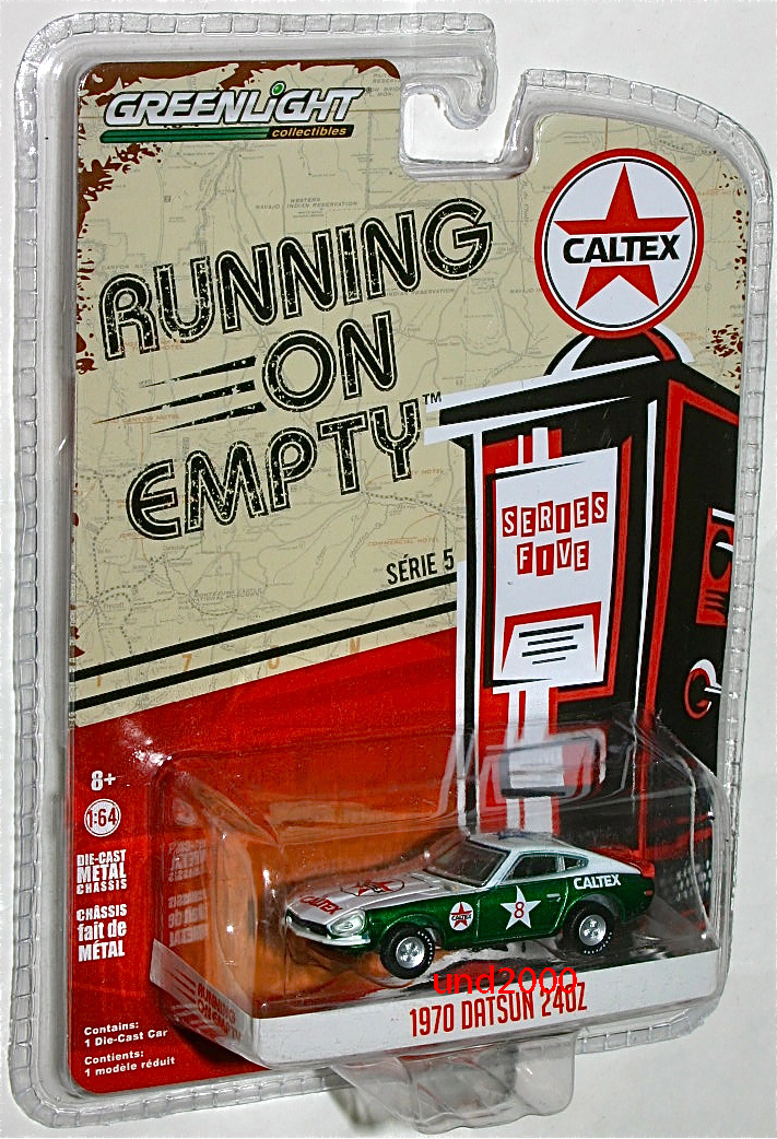 Green Light、Running Of Empty Series 5、1970 Datsun 240Z。Caltex。スケール1/64、トミカ・サイズ。通常版のボディがブルーで塗られている部分が、メタリック・グリーンのグリーンライト版トレジャー・ハント(チェスカー)、グリーン・マシーン。並行輸入品。未開封新品。ブリスターに若干のスレがあります。量産品の製品のクオリティーについてはノークレームでお願いいたします。お支払いはヤフーかんたん決済のみ。東京発、ゆうパック持込60サイズ(東京700円 - 沖縄1330円)、レターパックプラス600円、または定形外郵便(追跡番号、保険無し)450円の発送となります。(上記の送料はこの出品物のみの料金となります。複数落札、同梱包発送の場合、重さ、サイズが変わりますので送料が変わります。)3日以内のご連絡、かんたん決済の支払期限内(通常5日、支払方法により異なります)のお支払い厳守でお願いします。入札される前に「自己紹介」もあわせてお読みください。。 検索用ワード グリーンライト Green Machine Chase Car チェスカー チェス チェース
