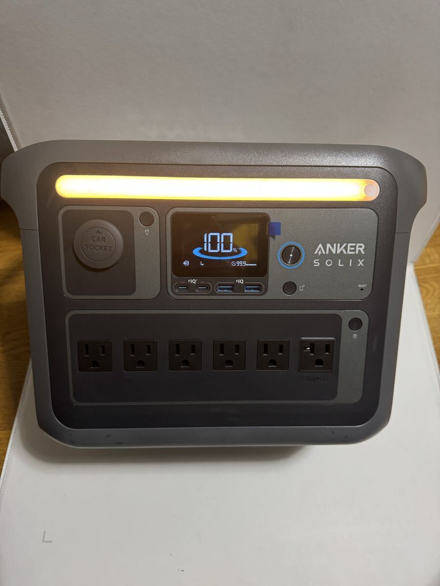 停電時に便利な大型ライトを搭載。100%満充電でも劣化することなく、災害時に備え長期保管が可能。リン酸鉄リチウムイオン電池採用。Anker独自技術で製品全体が長寿命、10年使えるポータブル電源。業界屈指のコンパクト。