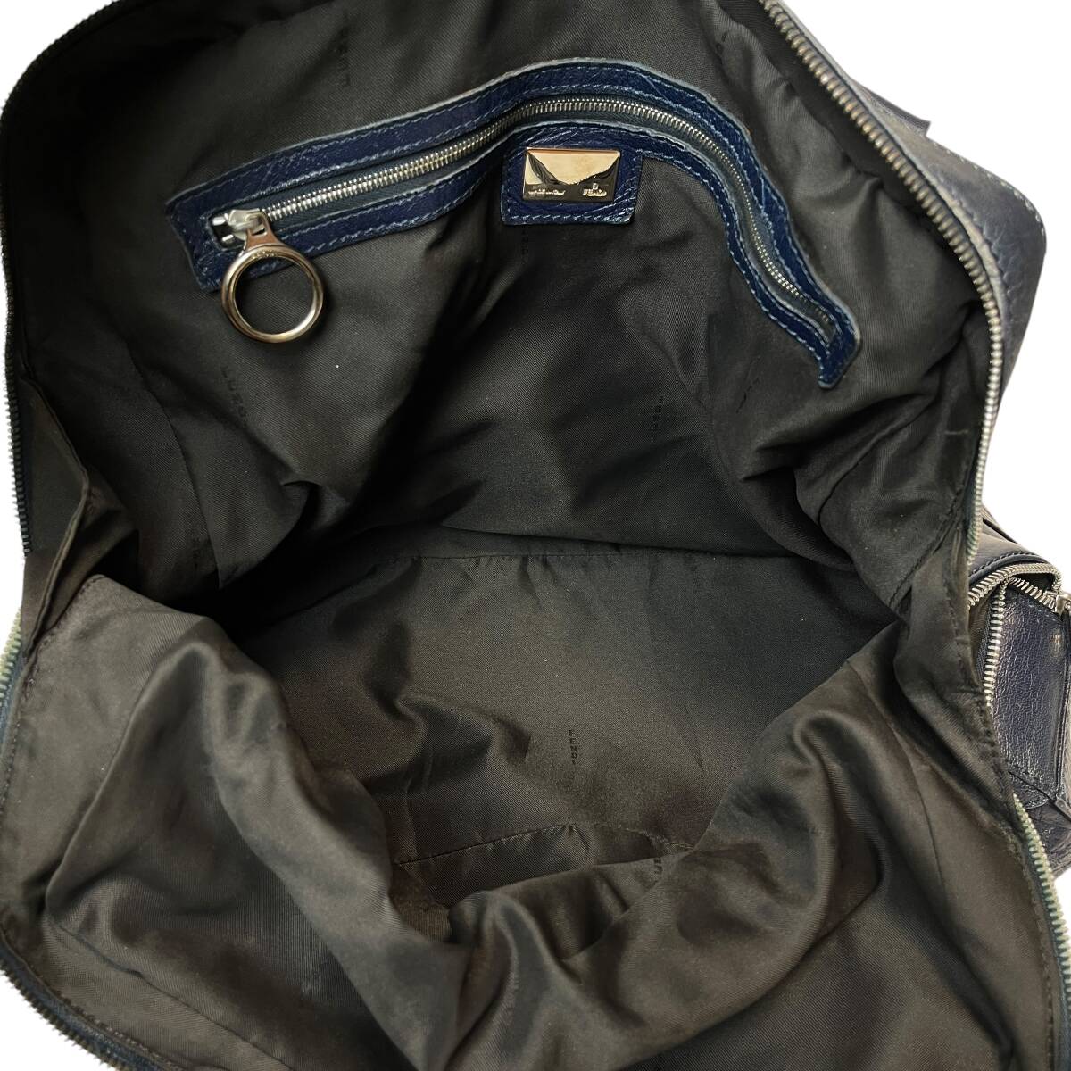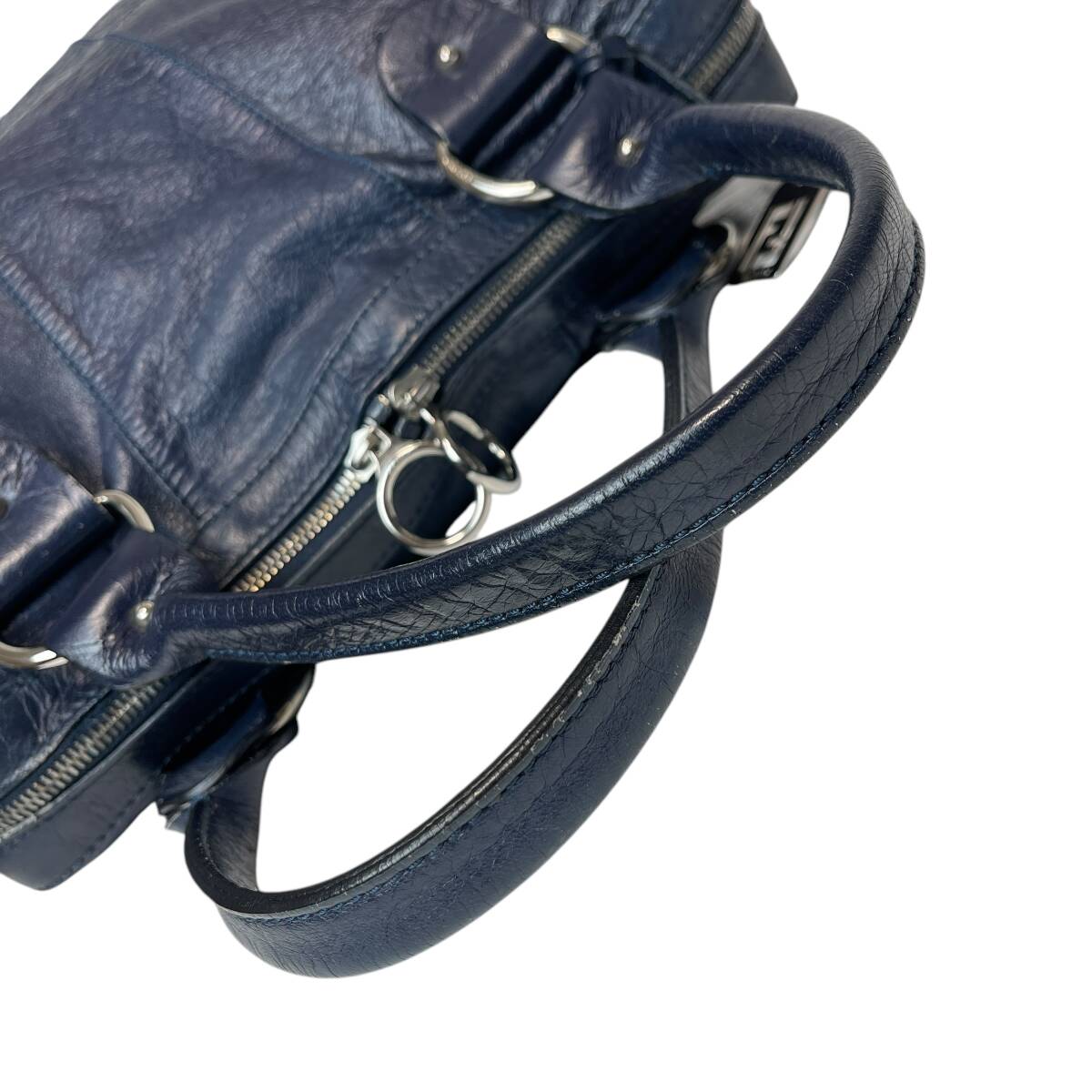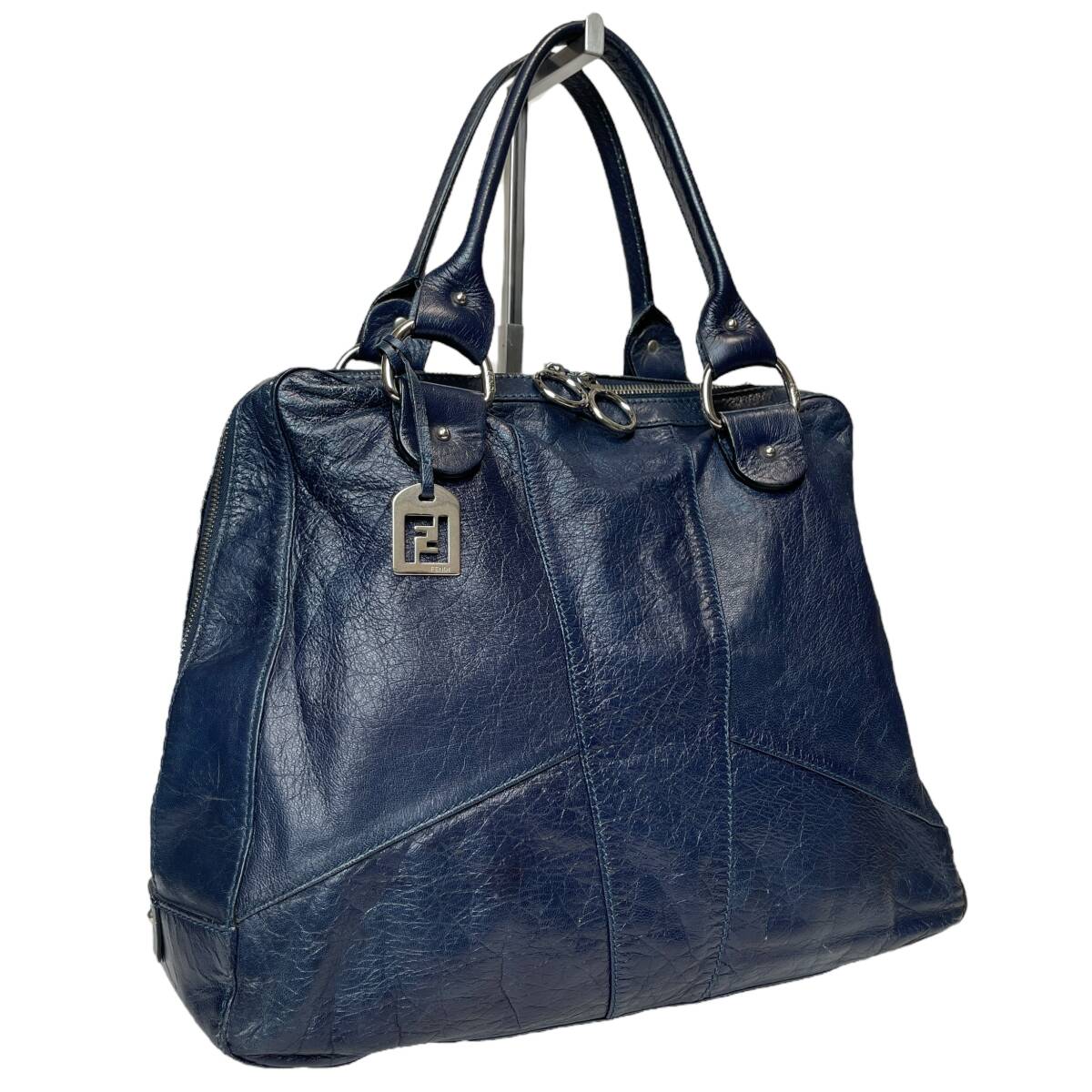 良品 FENDI 2922 ビジネスバッグ A4可 ロゴチャーム レザー ネイビー 本革 ブリーフケース トートバッグ フェンディ メンズ 書類
