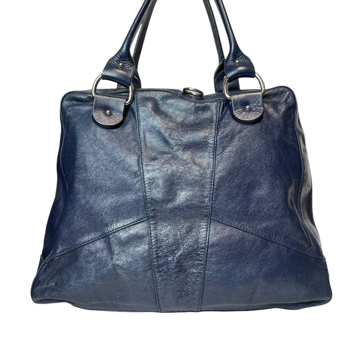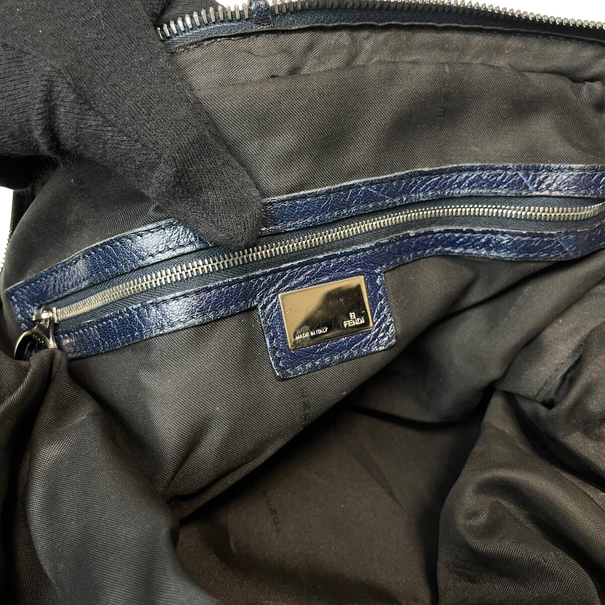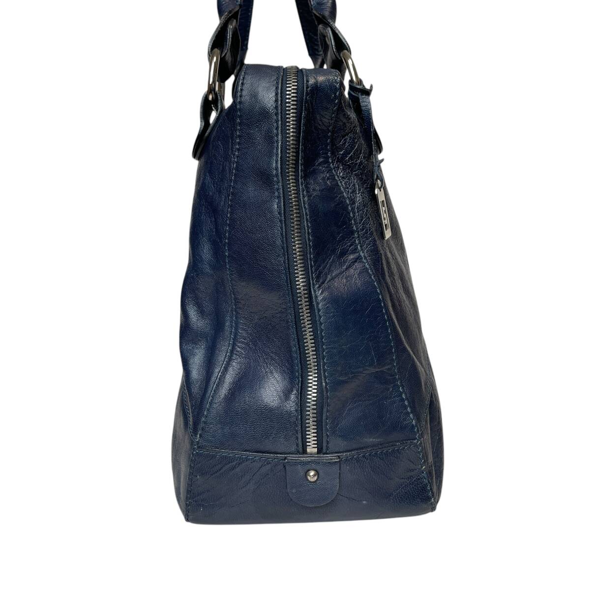 良品 FENDI 2922 ビジネスバッグ A4可 ロゴチャーム レザー ネイビー 本革 ブリーフケース トートバッグ フェンディ メンズ 書類