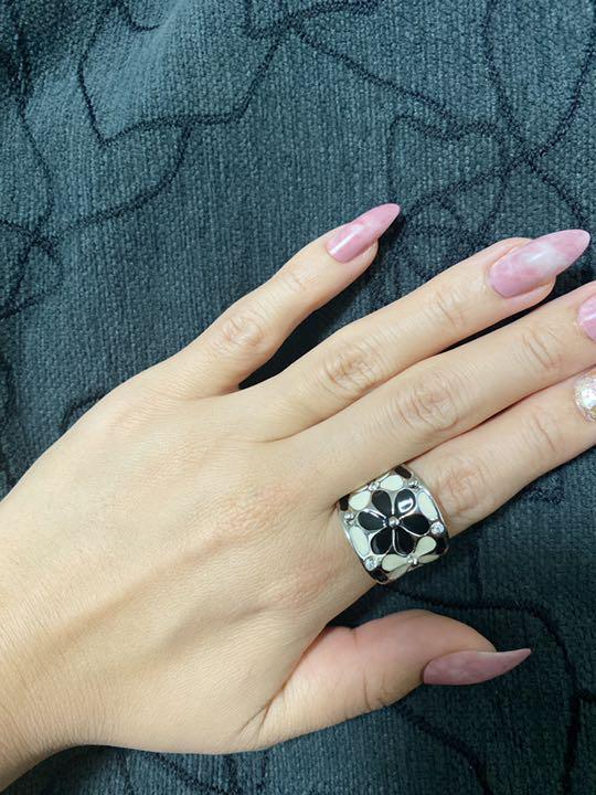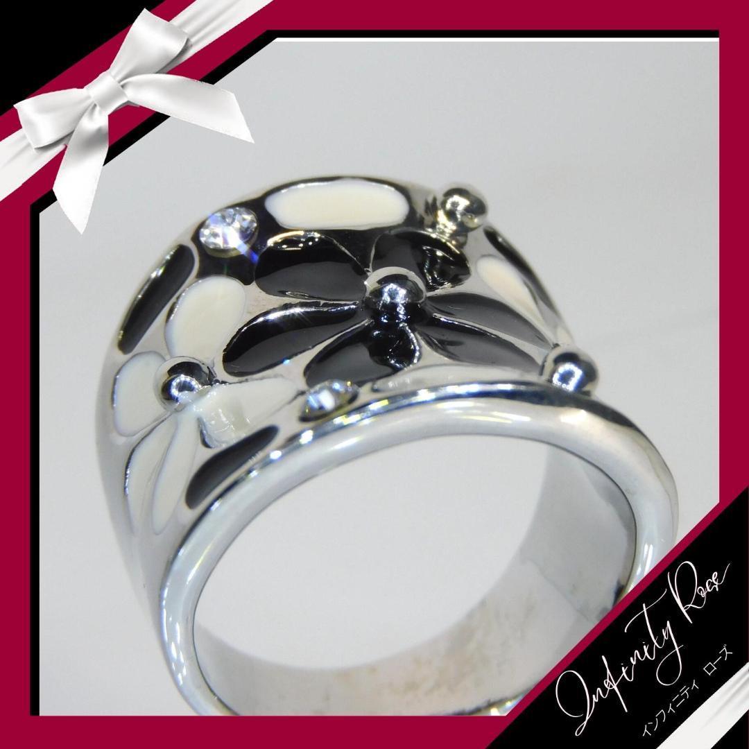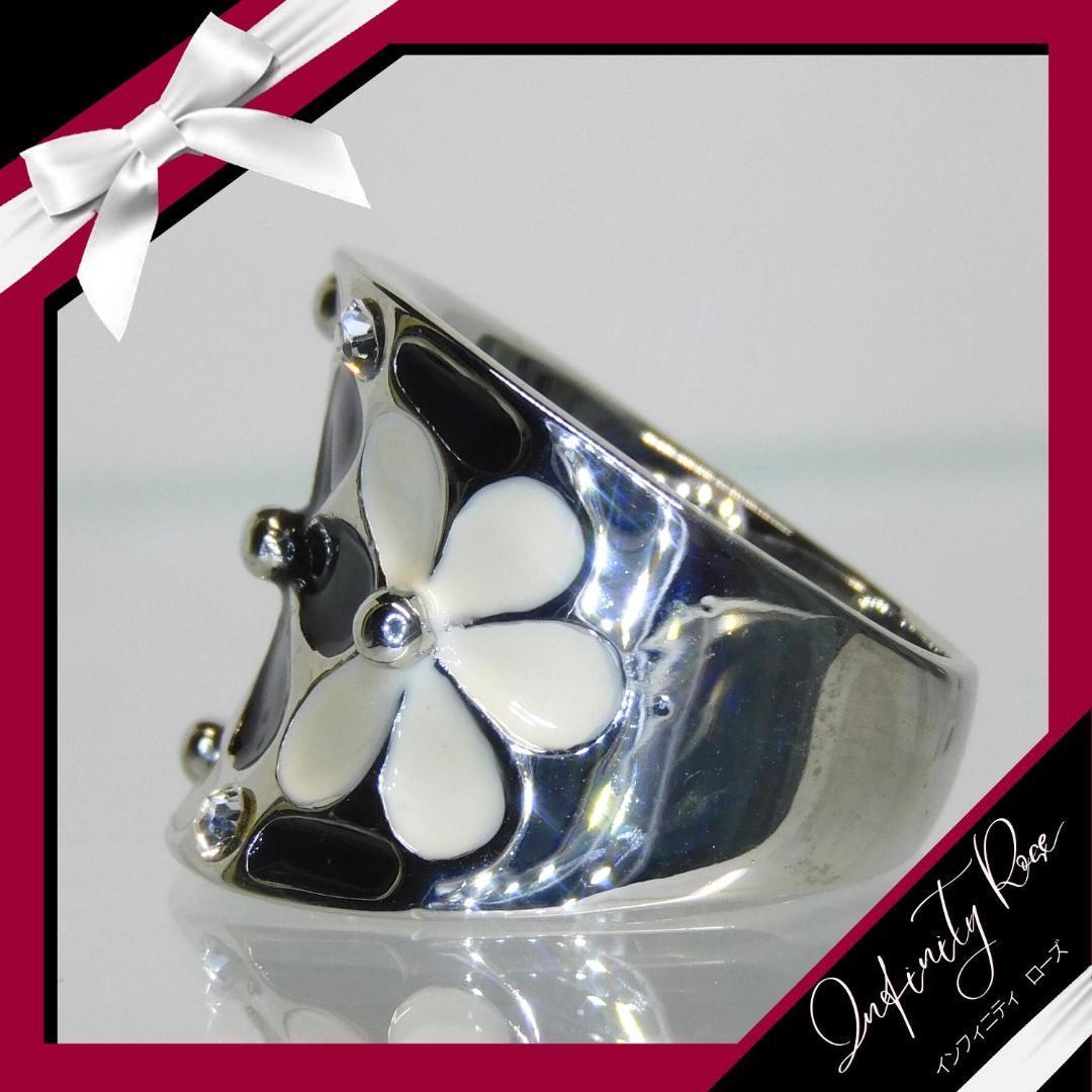 (1180)11号 シルバー×ブラック×アイボリーフラワーリング 指輪