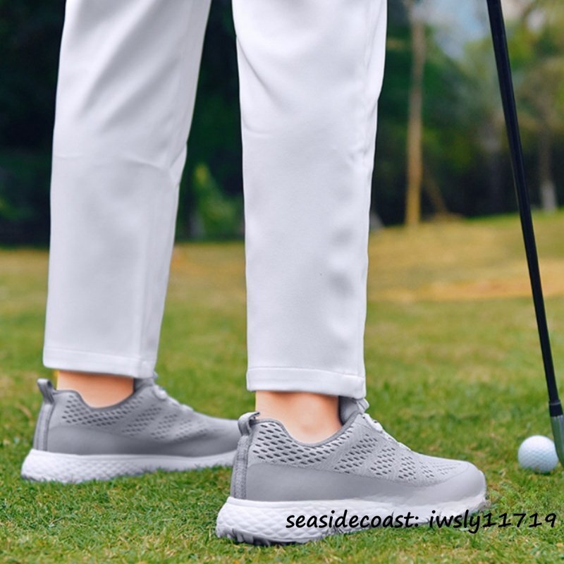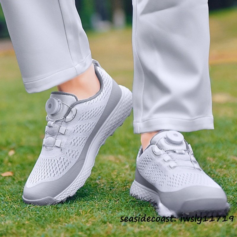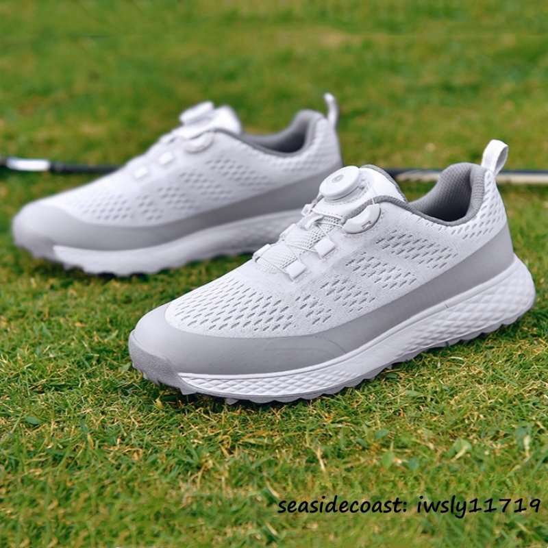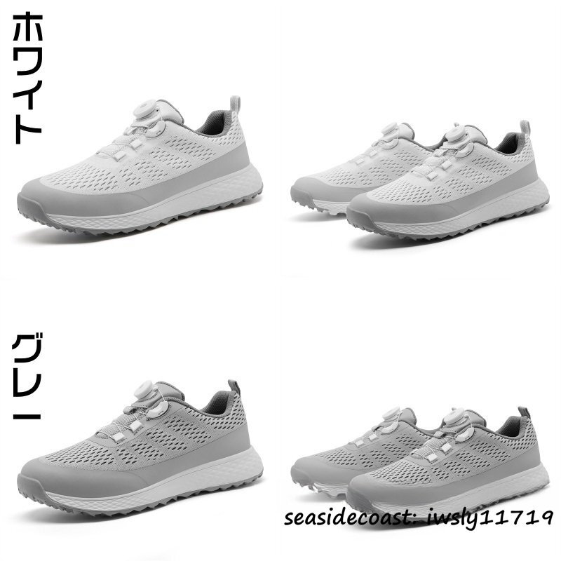新品★メンズシューズ ゴルフシューズ 軽量 通気性 スニーカー メッシュ スポーツシューズ 運動靴 カジュアル 幅広 ダイヤル式 白系 24.5cm