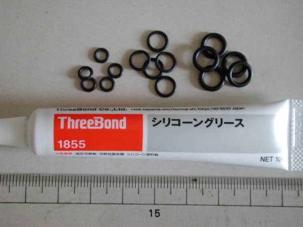 写真の様なオーリングで大、中、小と極小を各10個ずつの計40個が出品物です。ライン2やギャツビーのガス漏れ修理に使用されるオーリングです。パッキンやオーリングの交換時に薄く塗布する為のスリーボンド社のシリコングリスを少量ビニール袋に入れてお送り致します。 時計の電池交換時にも有ると大変便利です。  修理経験者様に向けての出品です。  送料は110円(定形郵便)     ダンヒル用はダンヒルのページに・・・・・  ライター修理なども出品中です。 その他の出品物も御覧下さい。