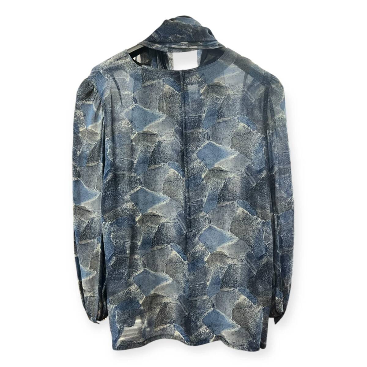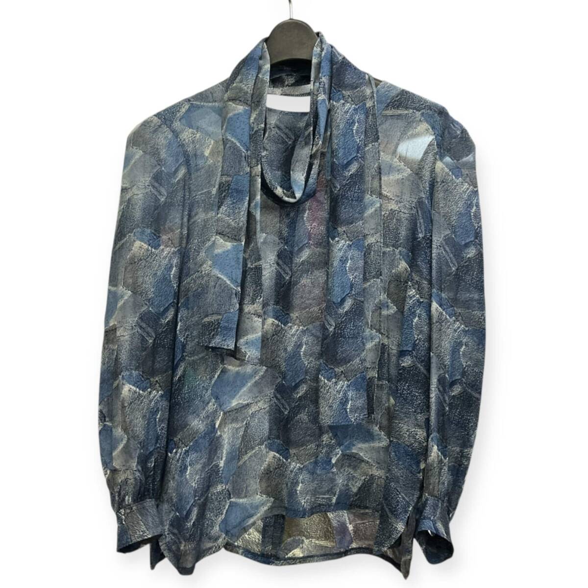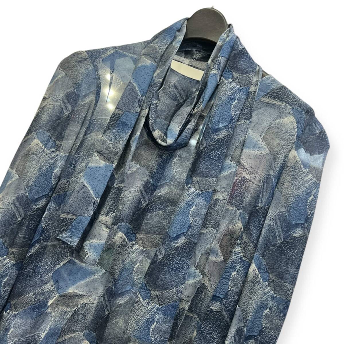 商品名 | シルク100% Leilian レリアン ボウタイ付き アート風 デザイン 長袖シャツ ブラウス 9/ブルー系 レディース シースルー |
