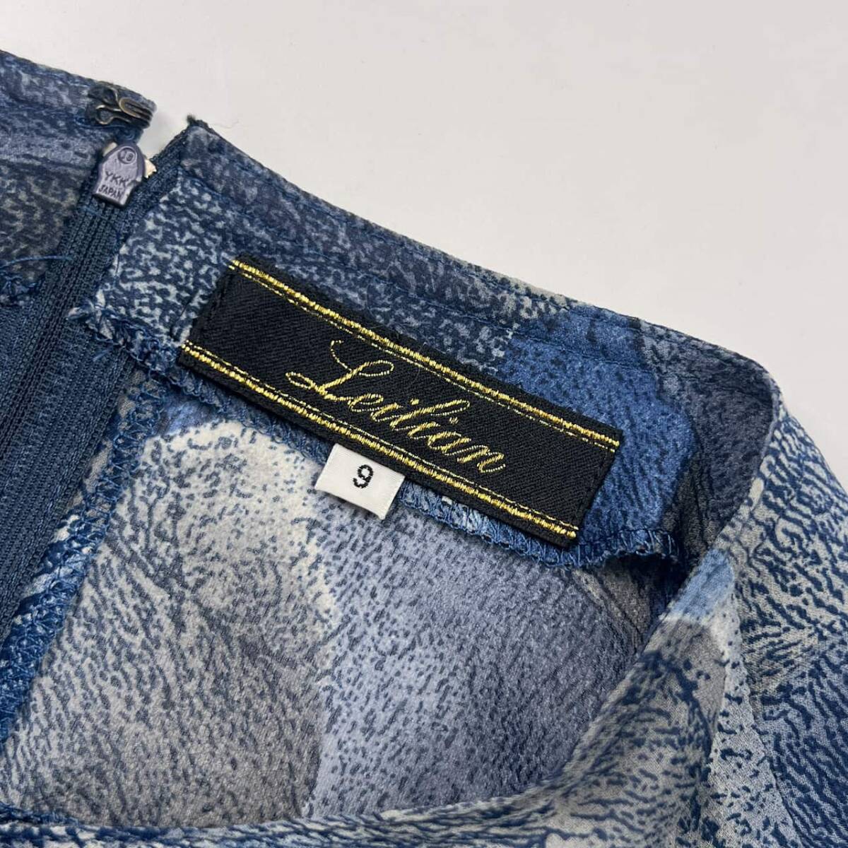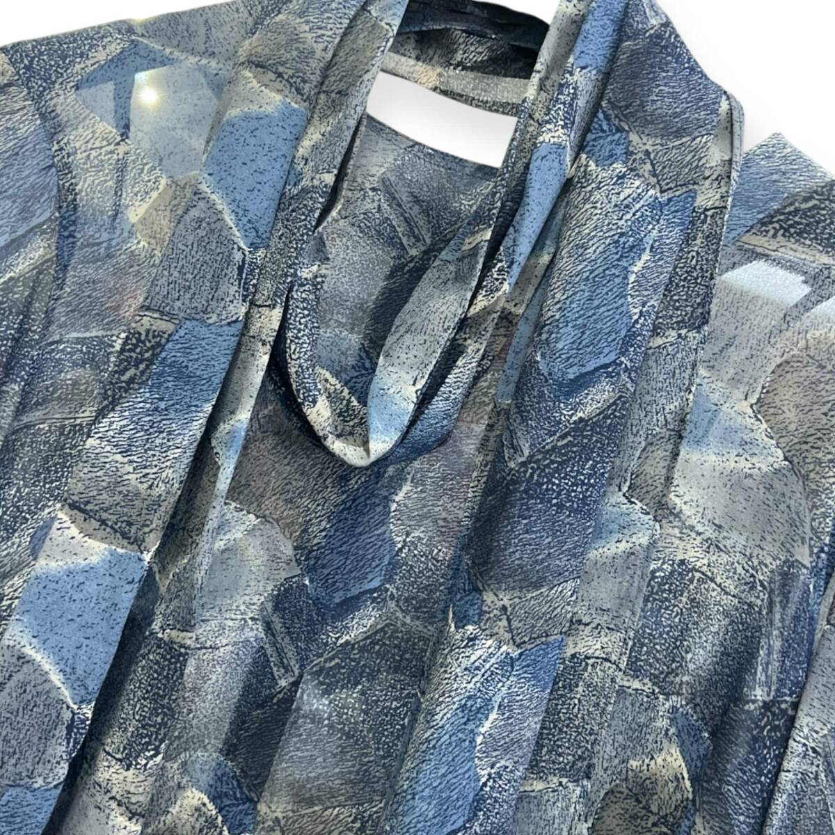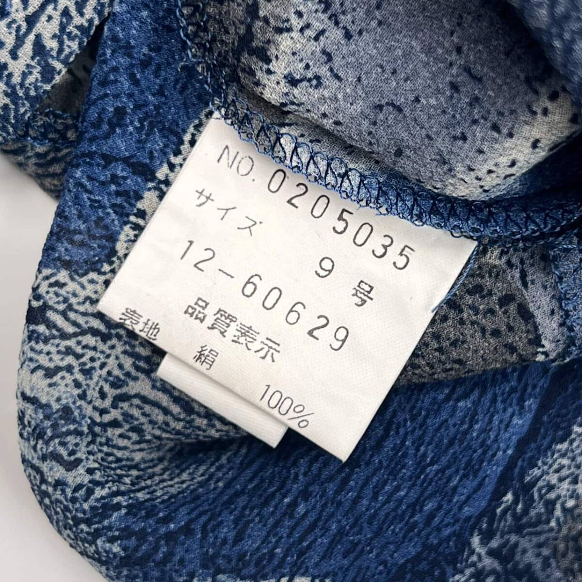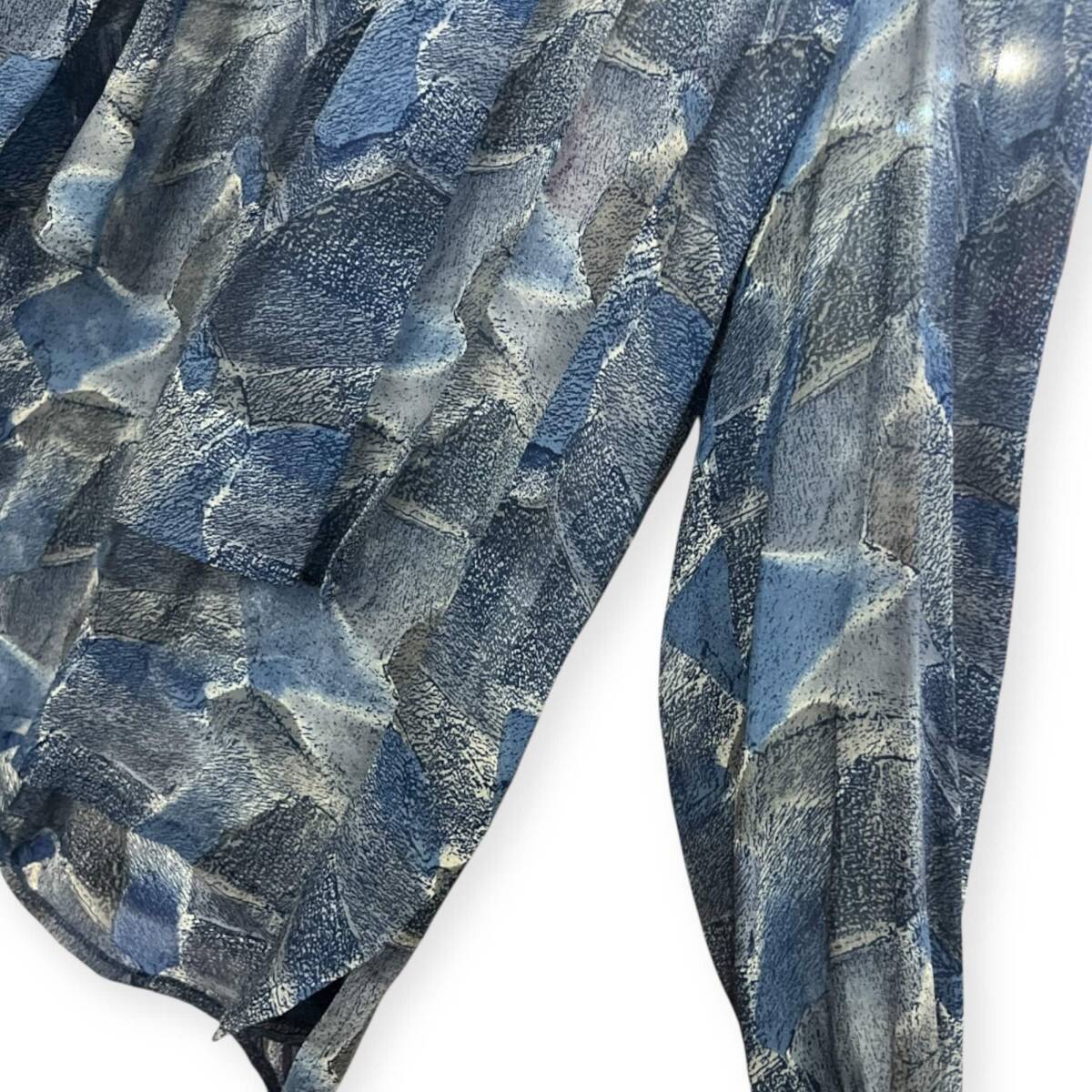 商品名 | シルク100% Leilian レリアン ボウタイ付き アート風 デザイン 長袖シャツ ブラウス 9/ブルー系 レディース シースルー |