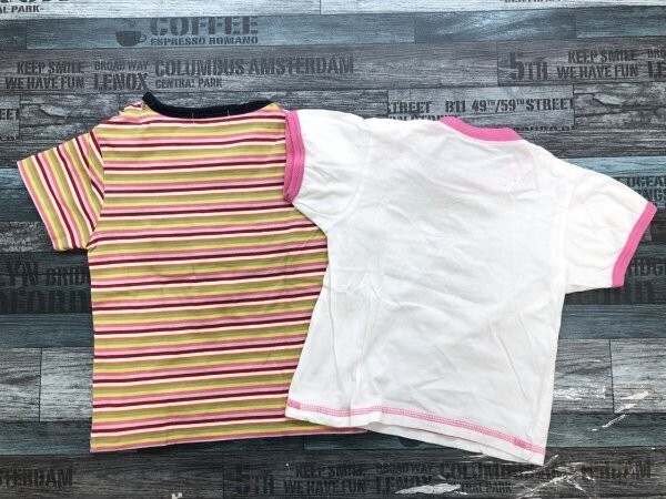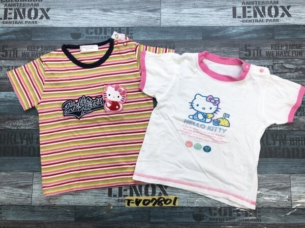HELLO KITTY ハローキティ キッズ プリント ボーダー&リンガー 半袖Tシャツ 2点セット まとめ売り 95 ピンク・白 です。